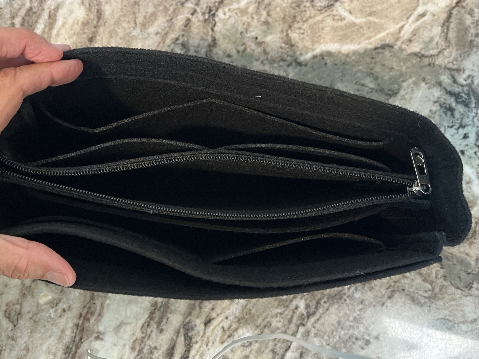 Large Purse Organizer Insert Black Felt Zipper Multiple Pockets