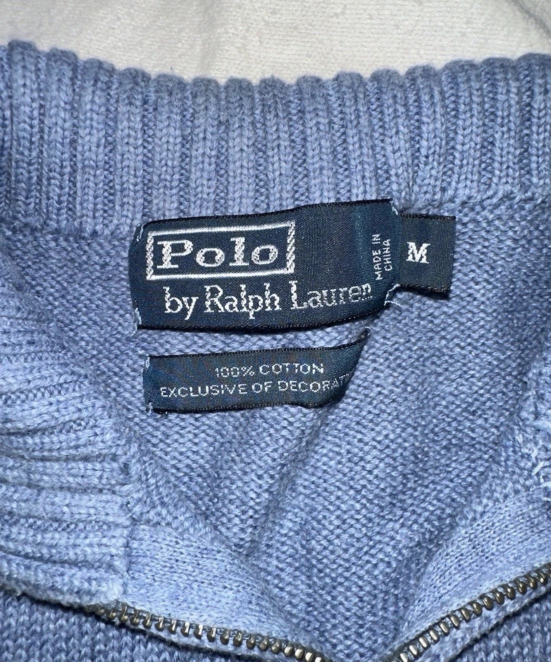 как выглядит Ralph Lauren Vintage Polo 1/4 Zip Sweater 100 Cotton Light Blue Size Medium фото