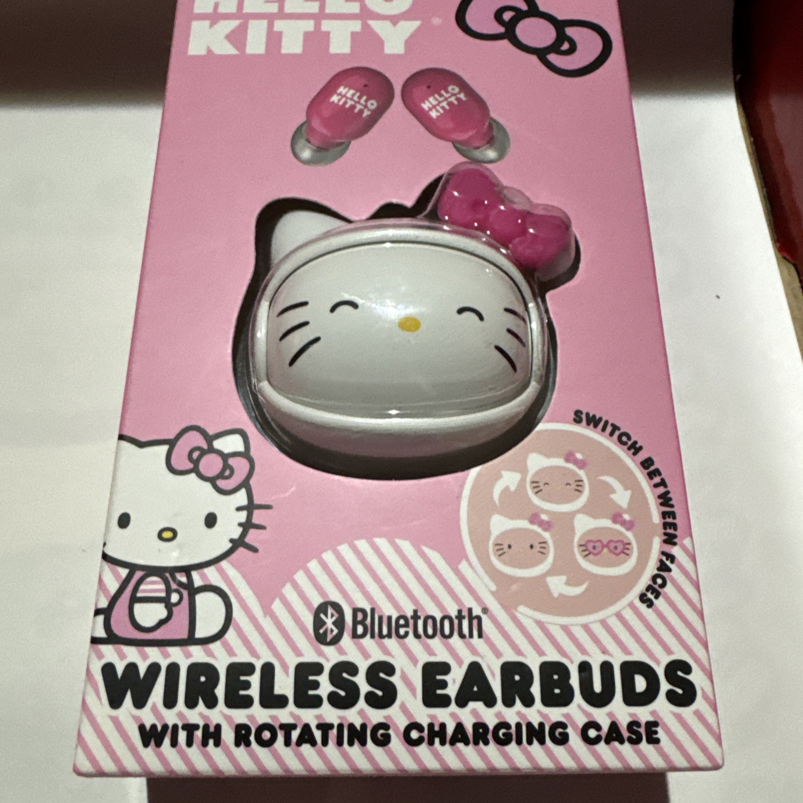 Sanrio Hello Kitty Wireless Earbuds Bluetooth Rotating Face Charging Case HTF