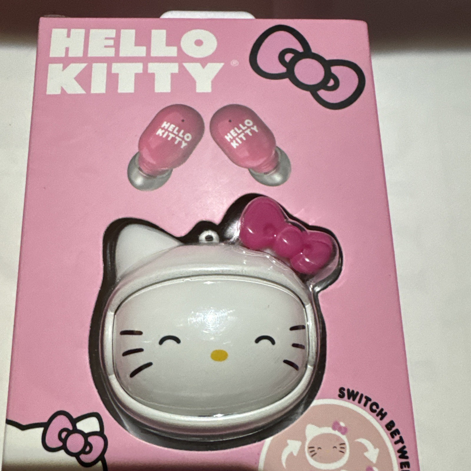 как выглядит Sanrio Hello Kitty Wireless Earbuds Bluetooth Rotating Face Charging Case HTF фото