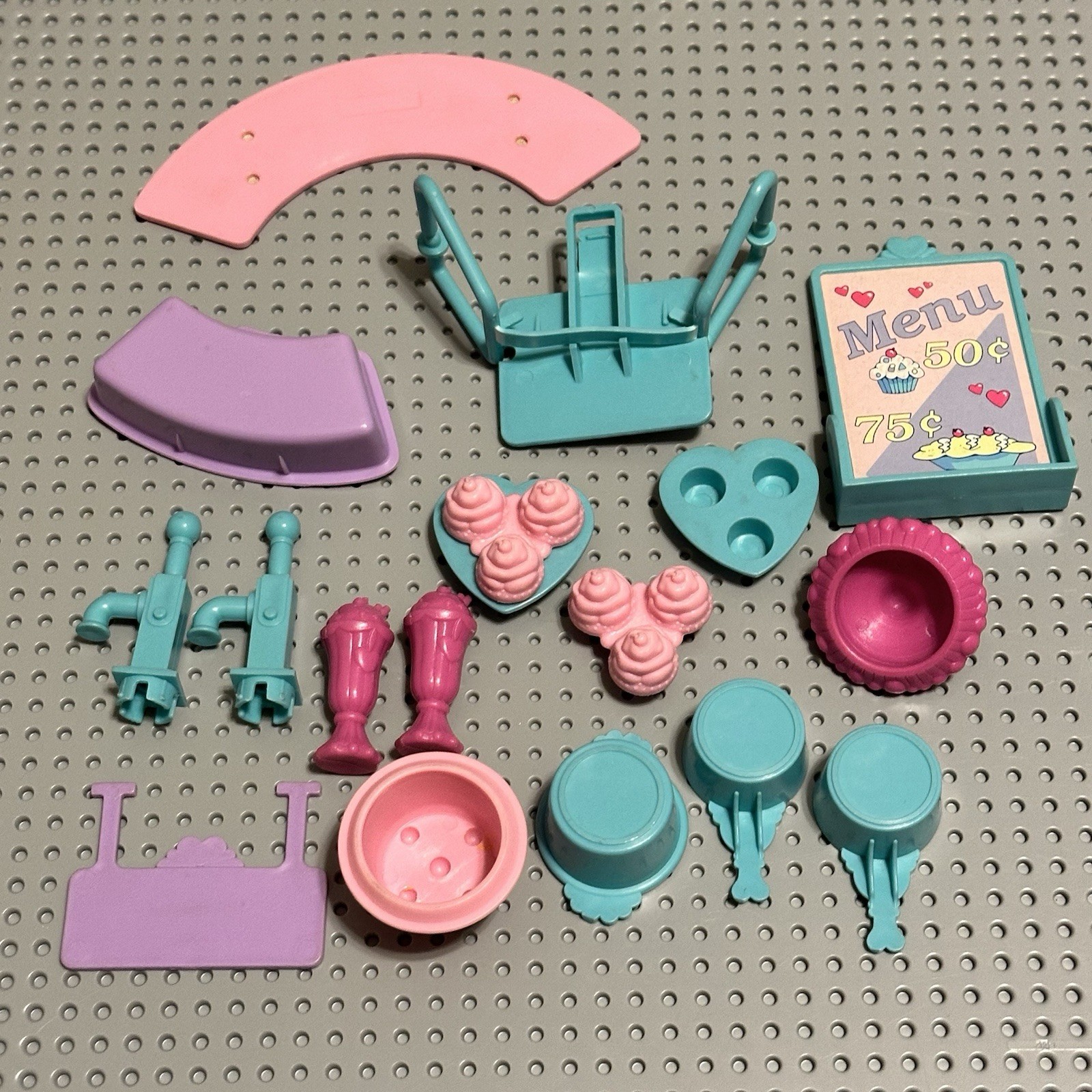 Vintage Tonka Dessert Shop, 1990s Cupcake Doll Playset Pieces Sign Pans Bowls