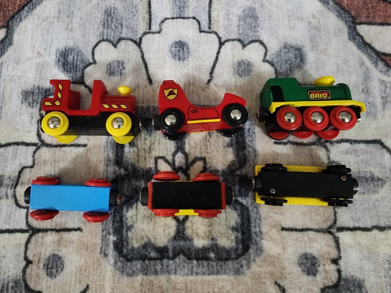 как выглядит BRIO Wooden Train Vintage Magnetic Engine Car Passenger Lot Of 6 фото