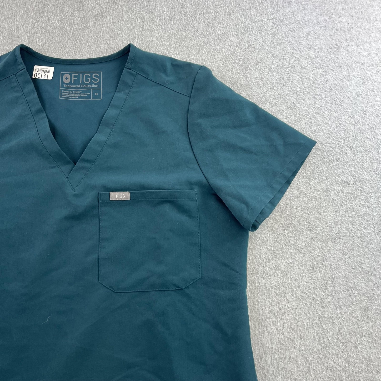 FIGS Scrub Top Womens Medium Green V Neck Technical Collection Shirt Medical