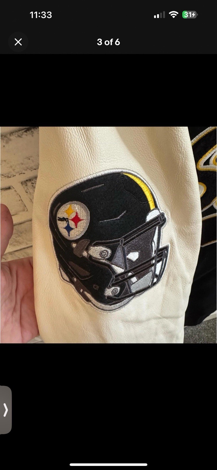 как выглядит NWT NFL Pittsburgh Steelers Starter varsity bomber jacket black white Large фото
