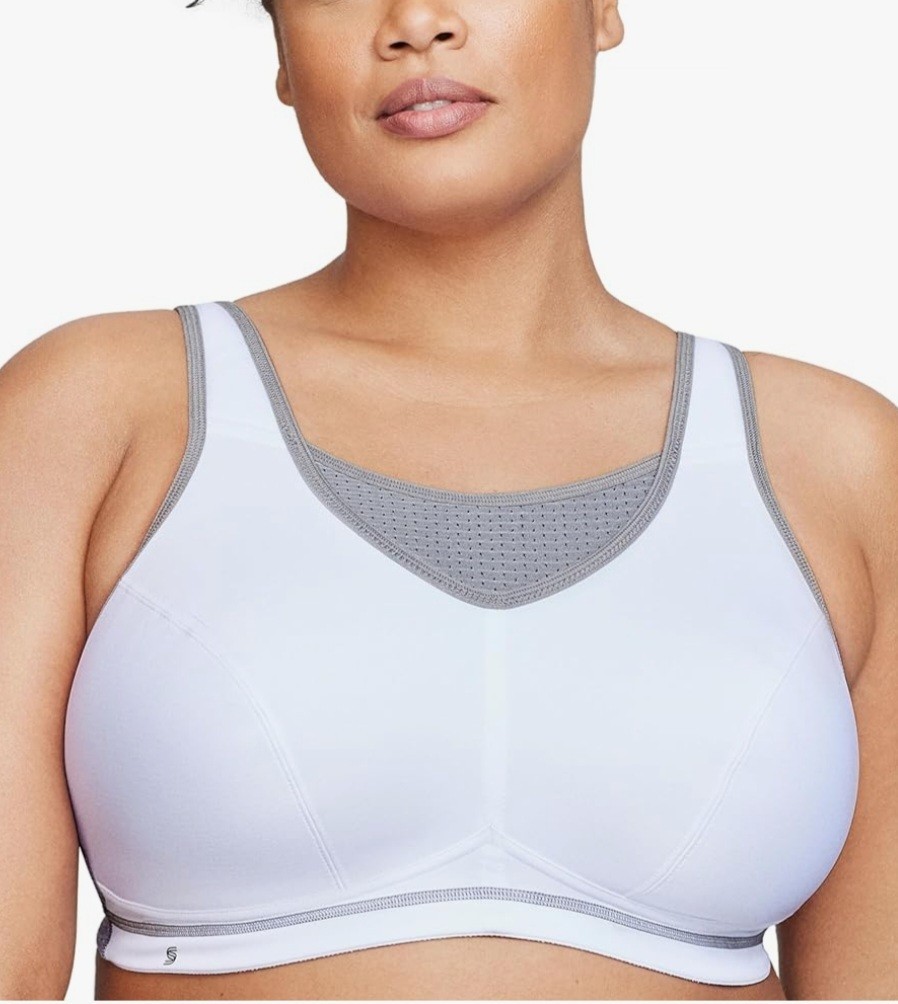 как выглядит Glamorise Sport No Bounce Camisole Sports Bra Wireless 38G White Grey 1067 фото