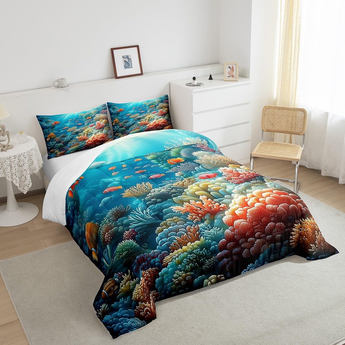 как выглядит Colorful Coral Bedding Set Full Size,Fish Underwater World Comforter Set for ... фото