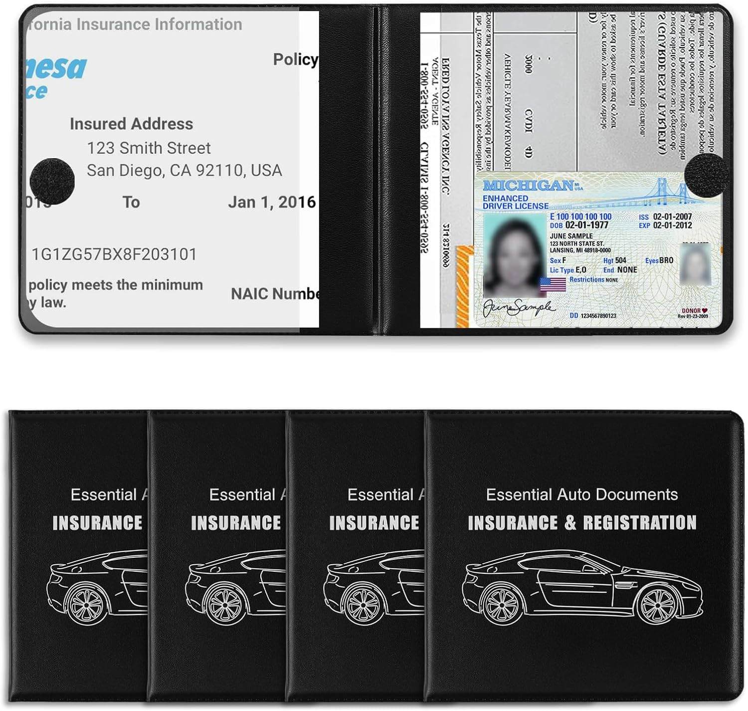 4x Large Car Registration and Insurance Holder Auto Essential Document Organizer