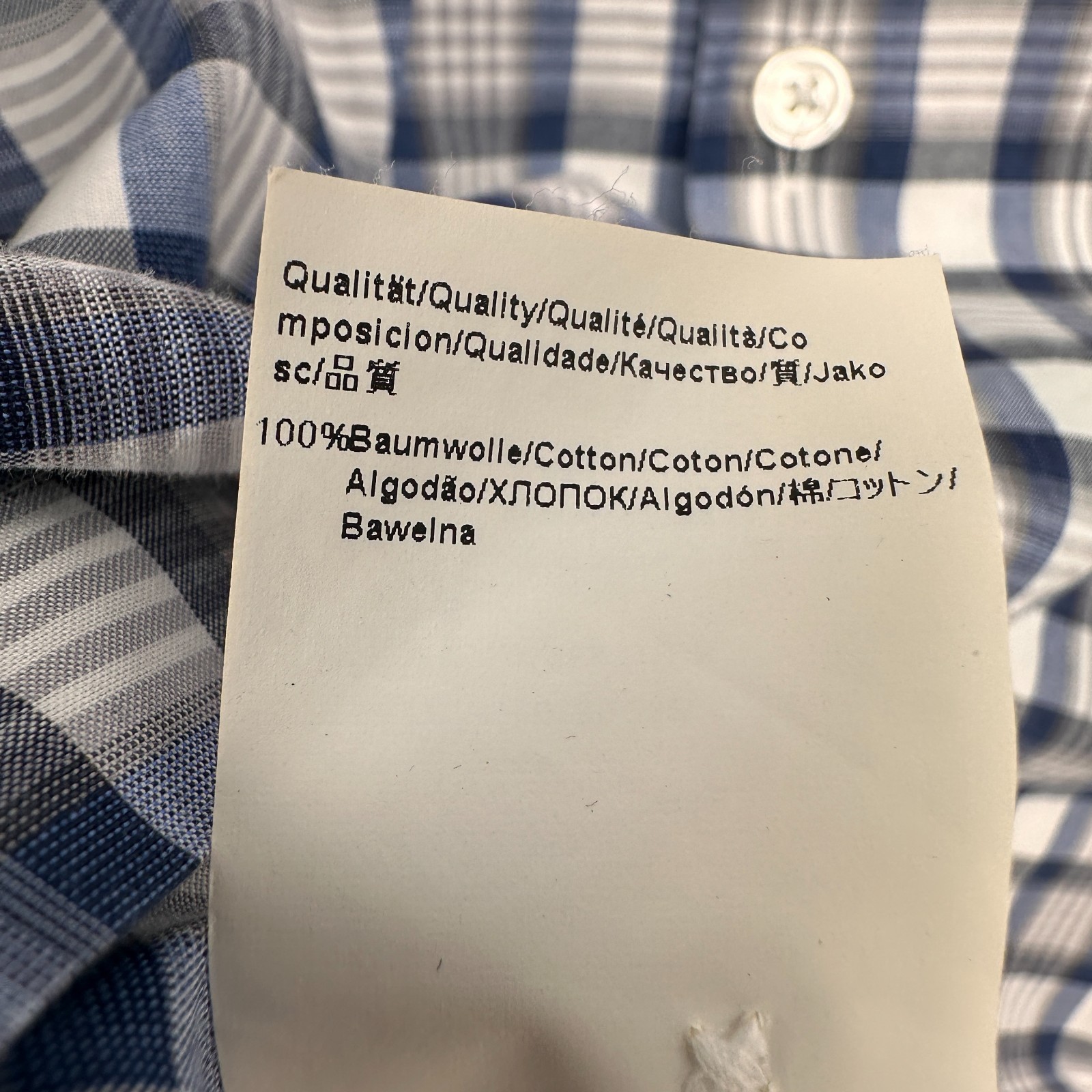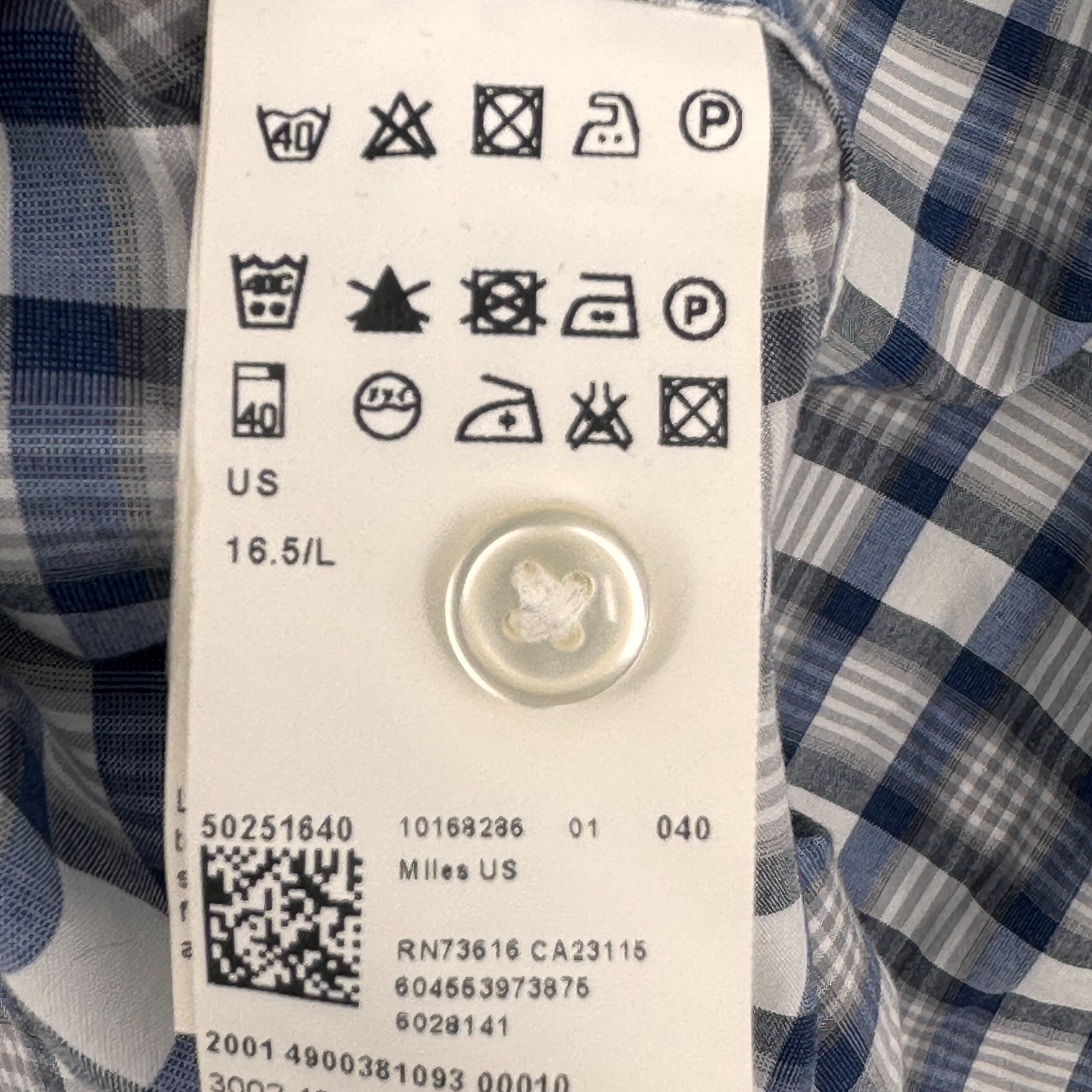 Hugo Boss Sharp Fit Mens Button Down Shirt Size 16.5 34/35 Blue Plaid LS Preppy