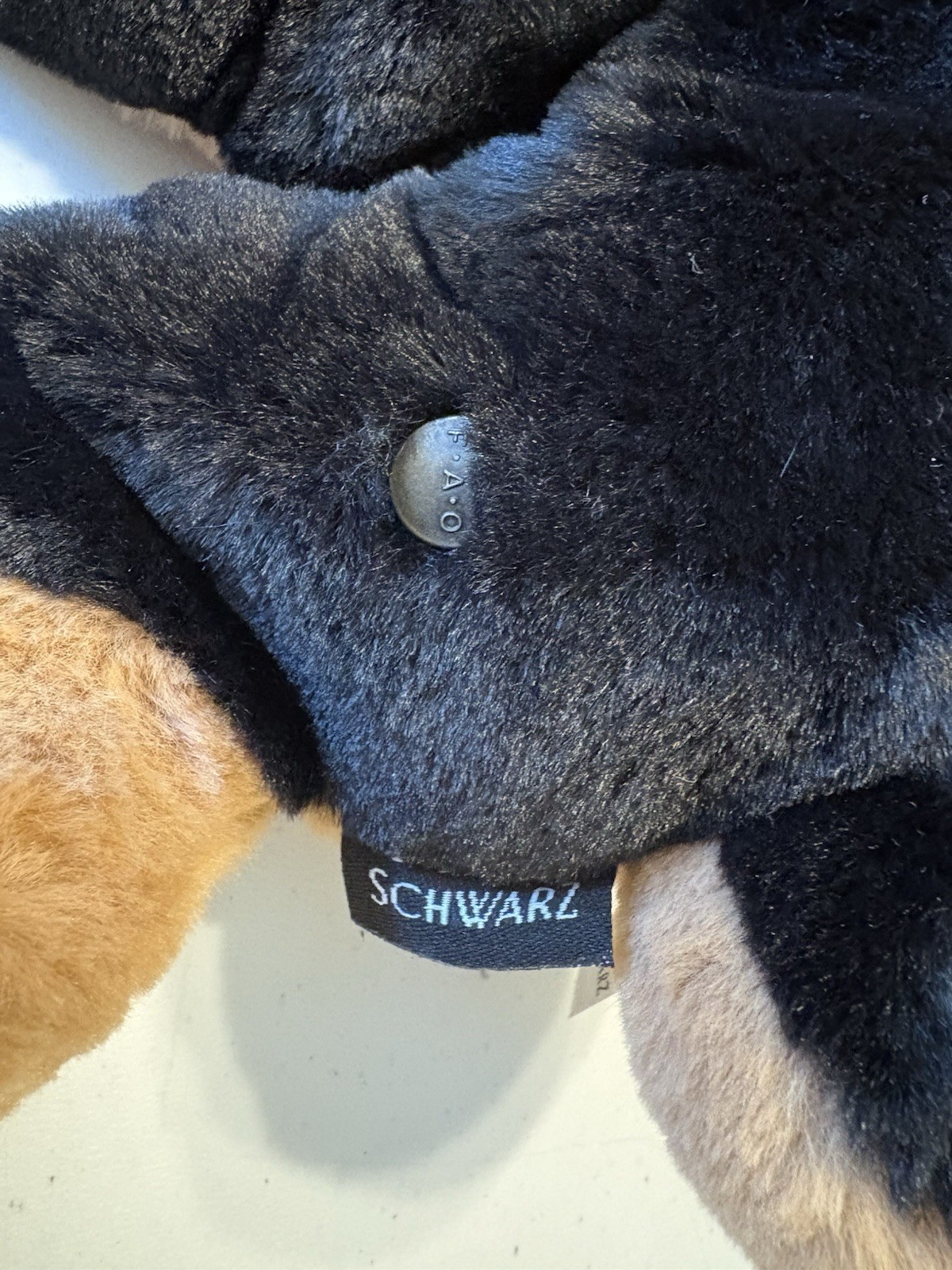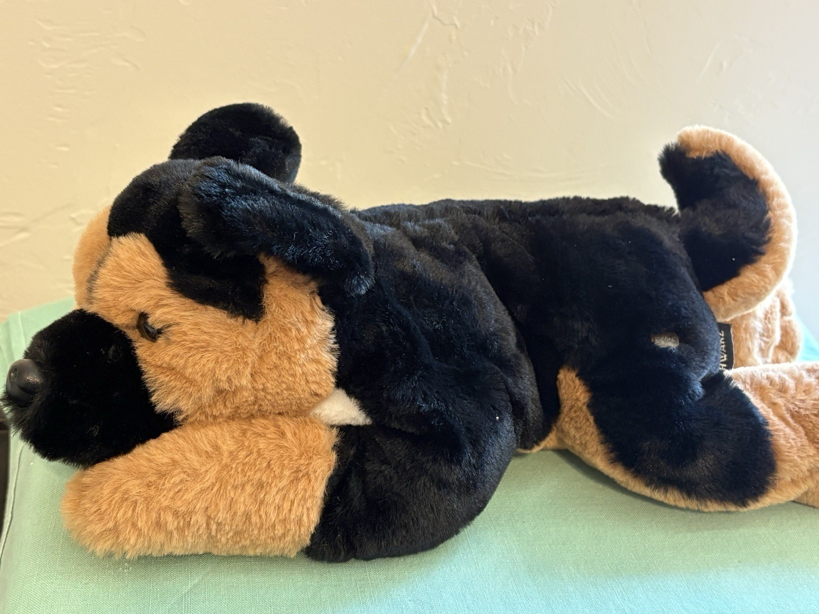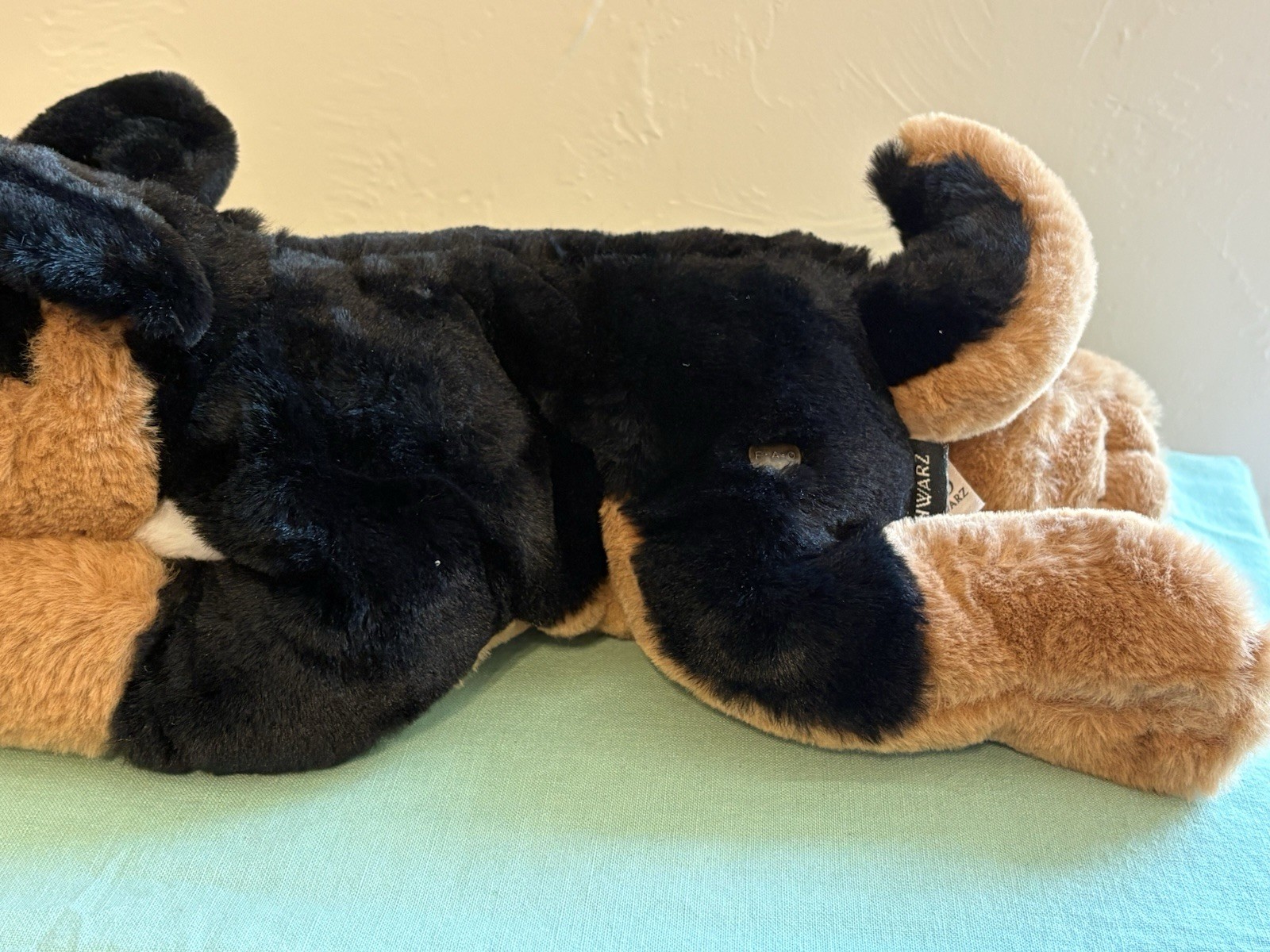 FAO Schwarz Black Brown Puppy Fog Soft Plush 14.5 Long White Chest Black Eyes