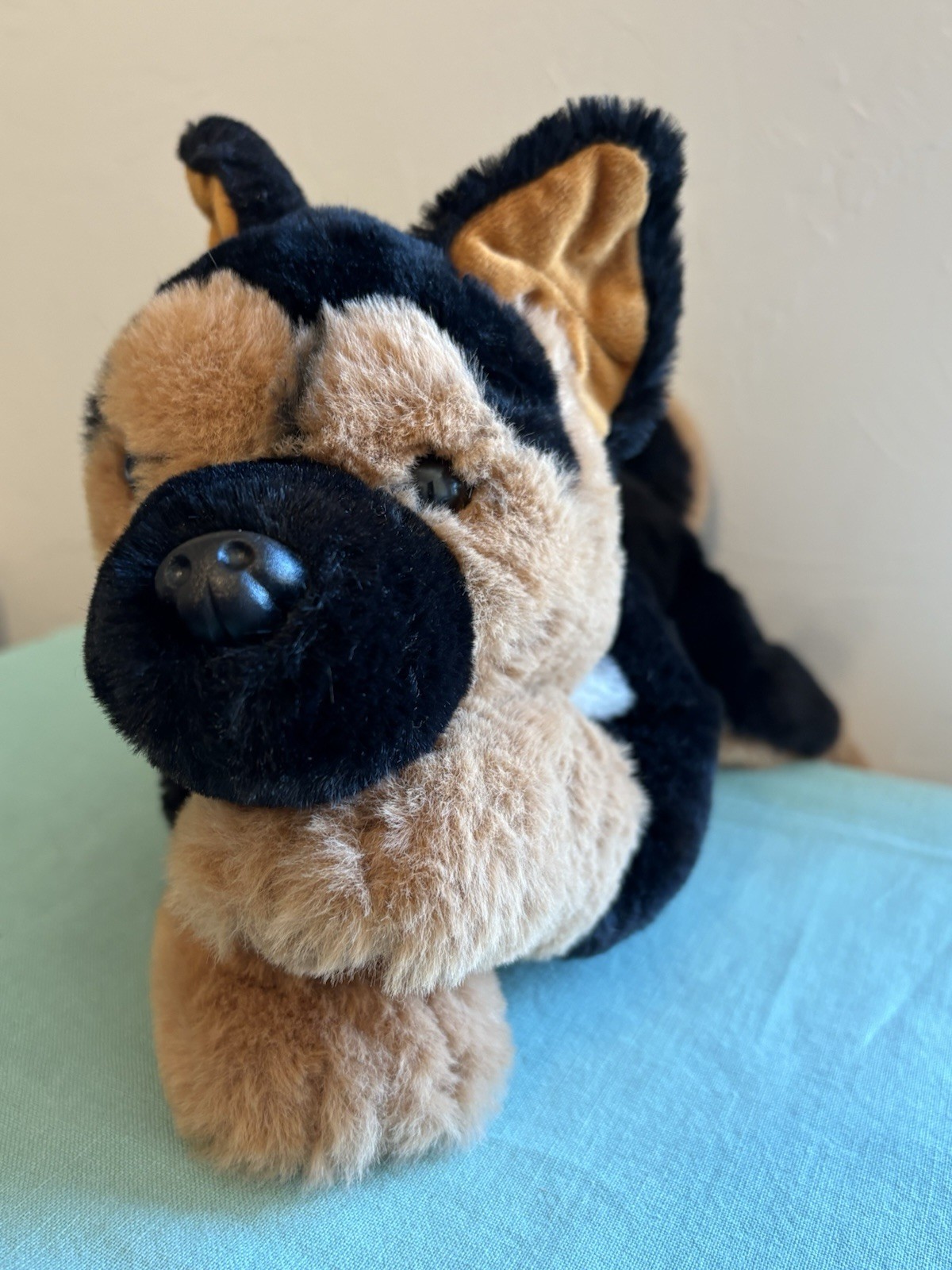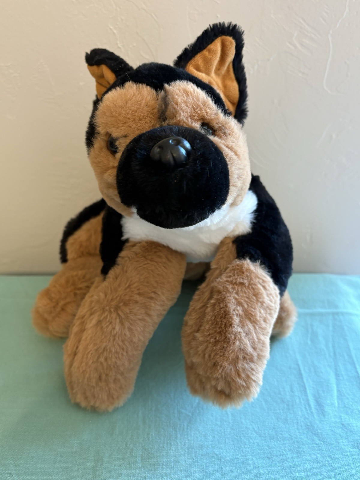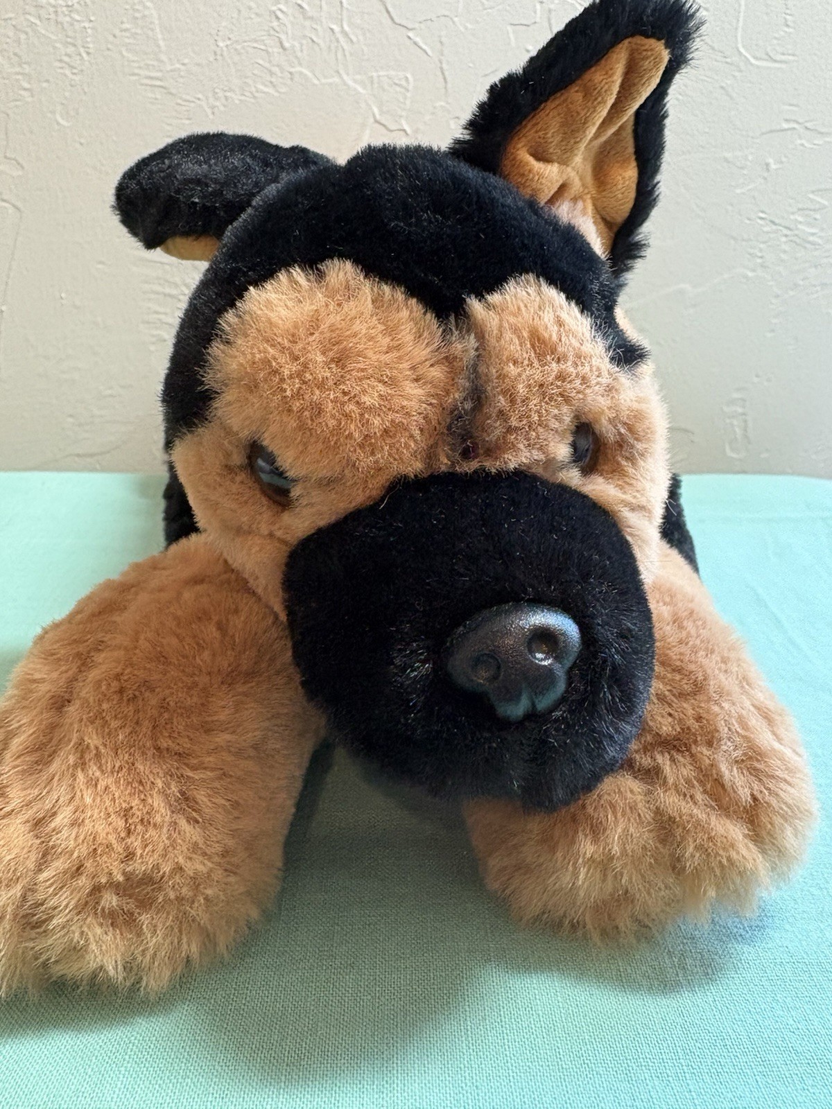FAO Schwarz Black Brown Puppy Fog Soft Plush 14.5 Long White Chest Black Eyes