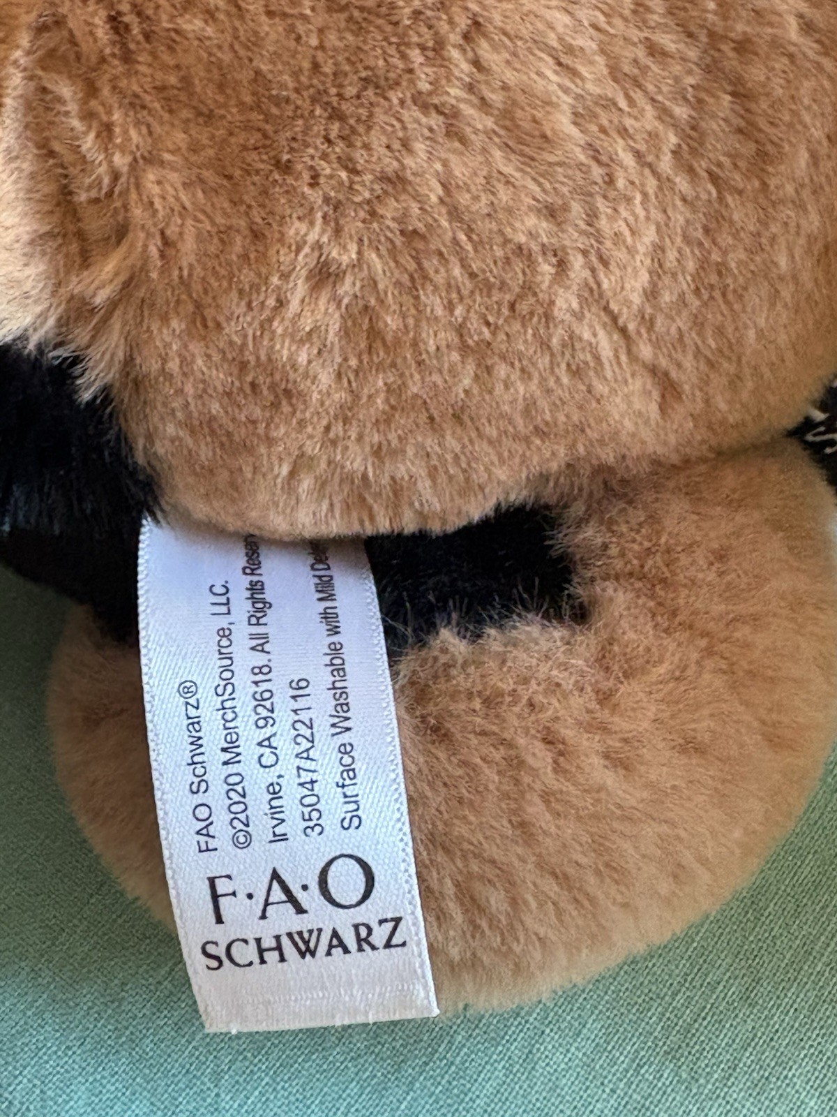 как выглядит FAO Schwarz Black Brown Puppy Fog Soft Plush 14.5 Long White Chest Black Eyes фото