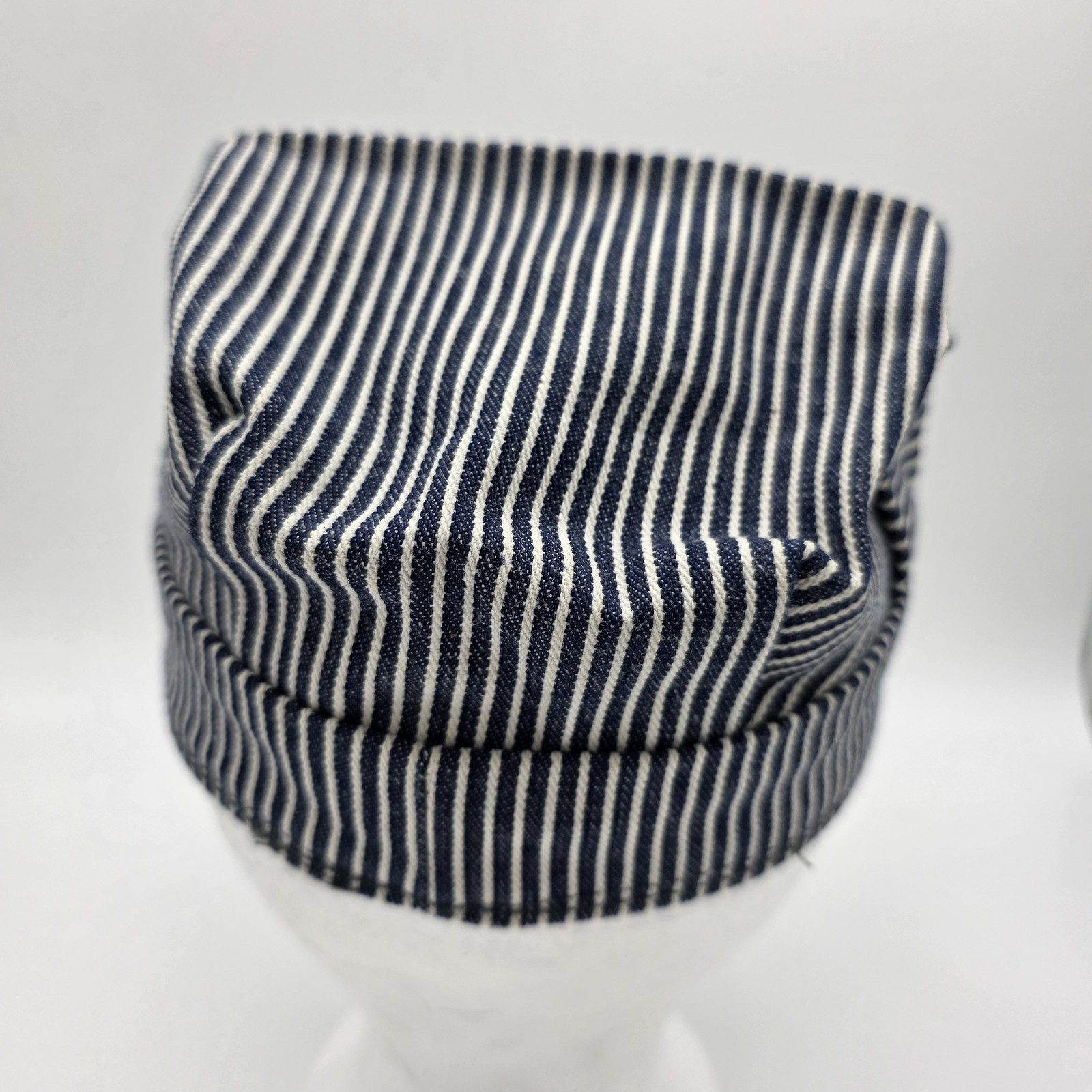 • BRONER Striped White/Blue Train Railroad Engineer Conductor Hat Youth Medium