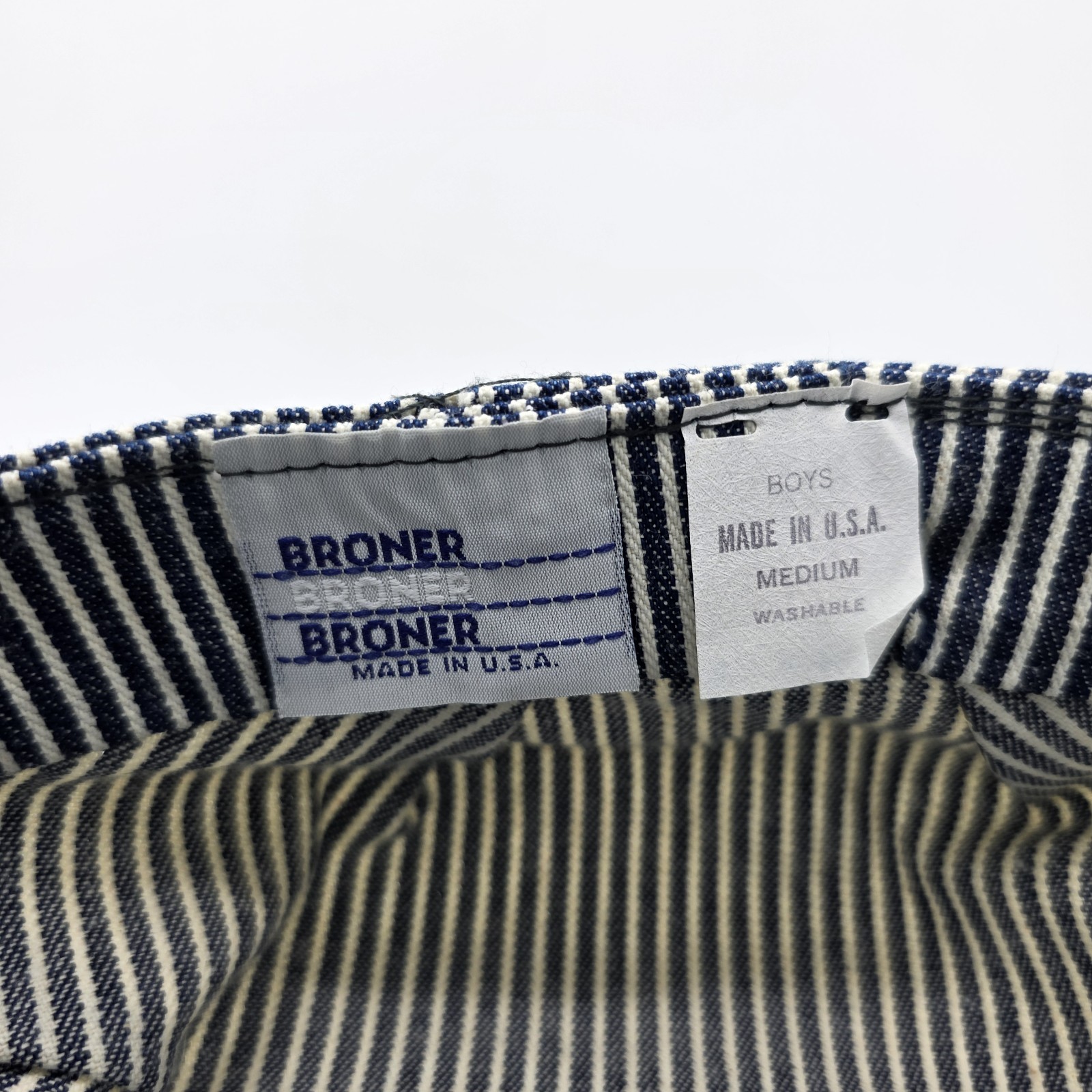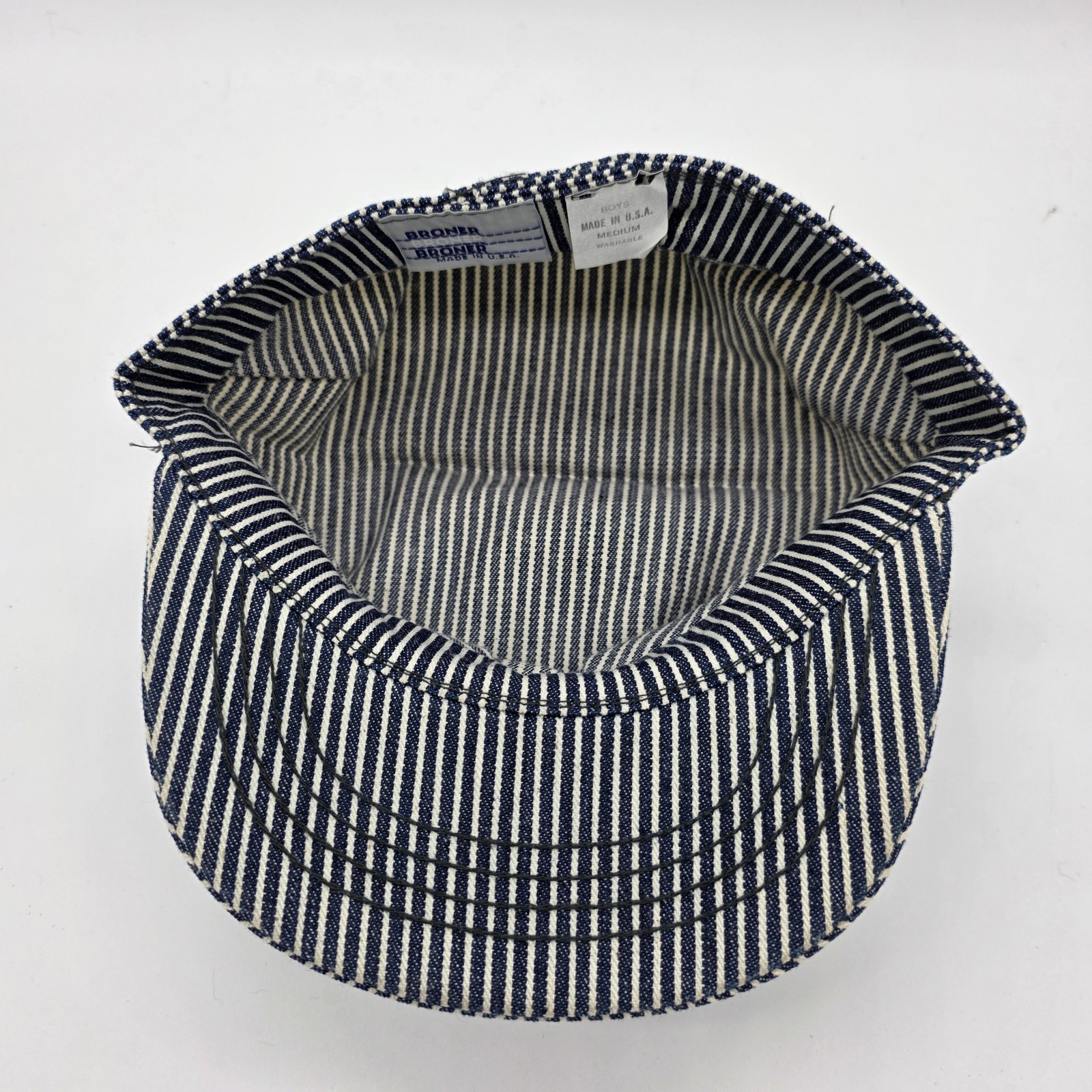 BRONER Striped White/Blue Train Railroad Engineer Conductor Hat Youth Medium