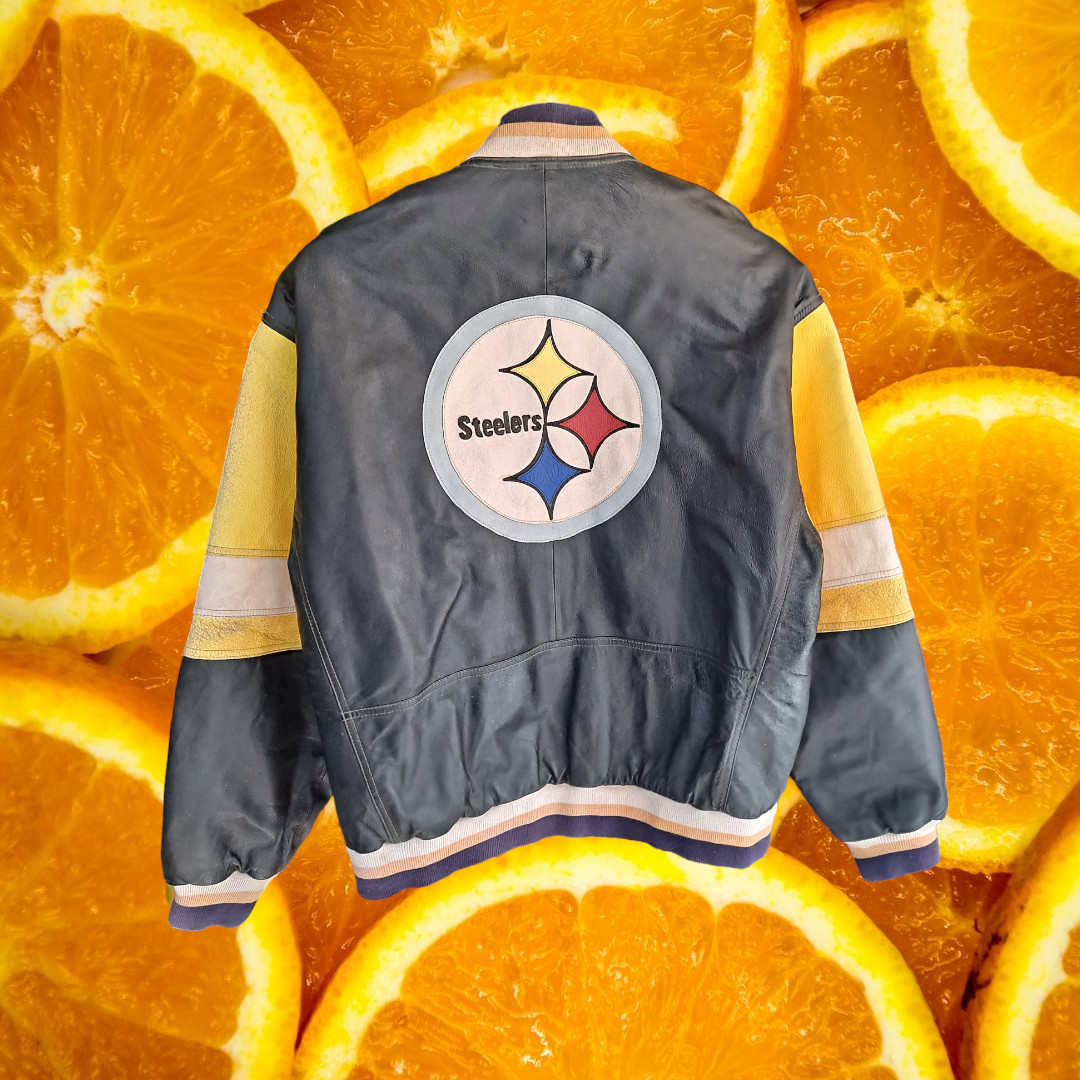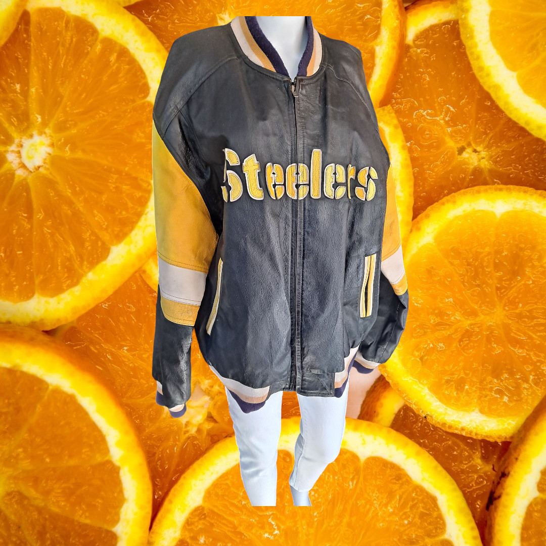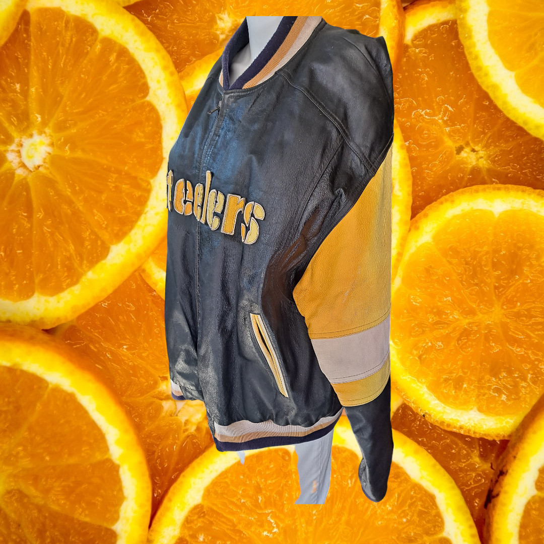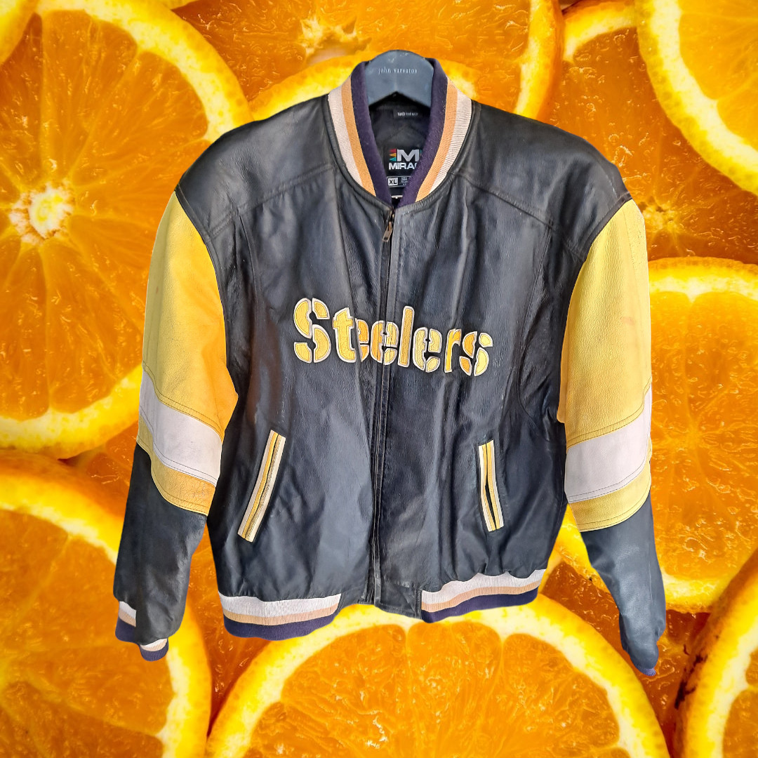 • Vintage NFL Mirage Letterman PITTSBURGH STEELERS Leather Varsity Jacket XL