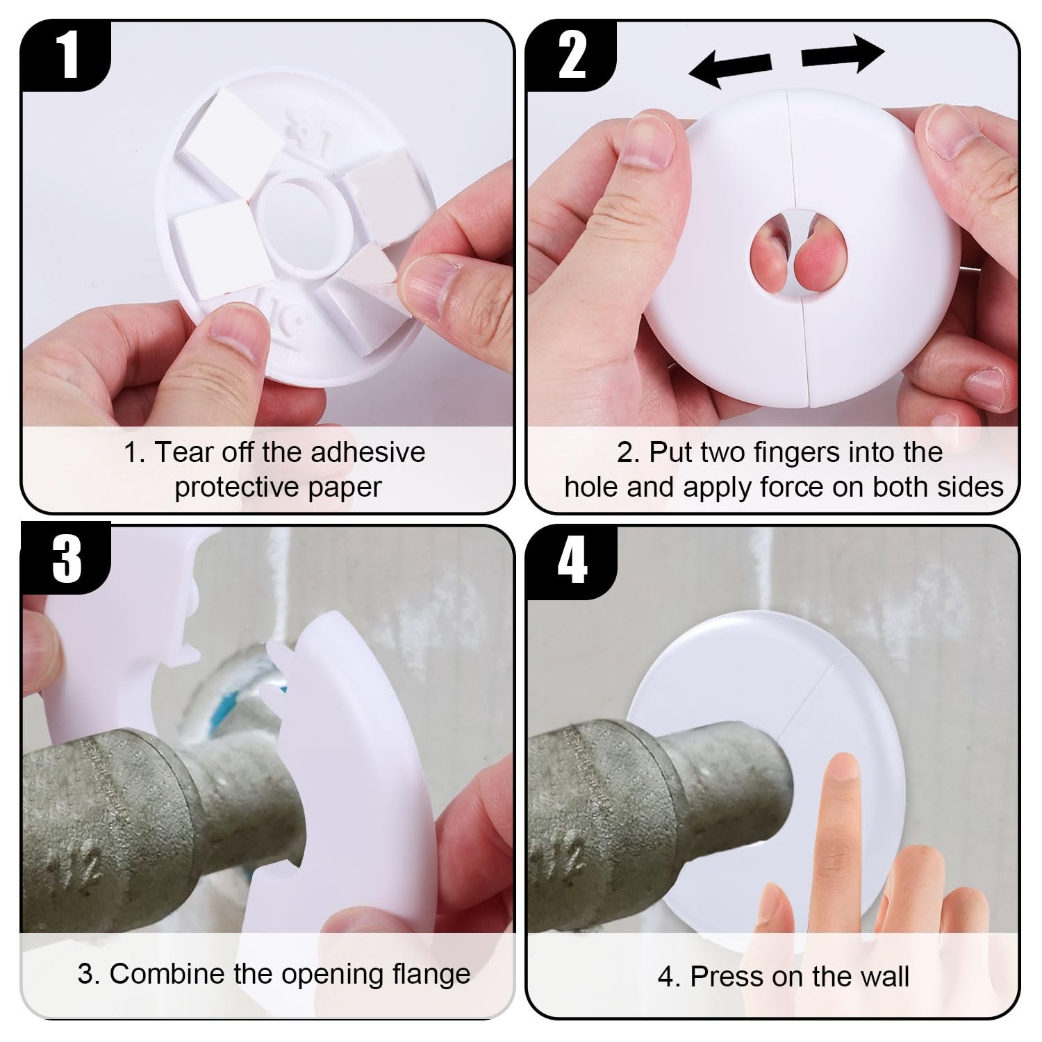 2pcs Wall Split Flange, Self-Adhesive Escutcheon 2.76x2.76x0.24in, White