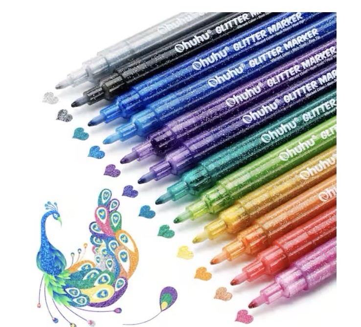 Ohuhu Glitter Markers Pen 12 Glitter Colors Metallic Shimmer Marker Fine Tip