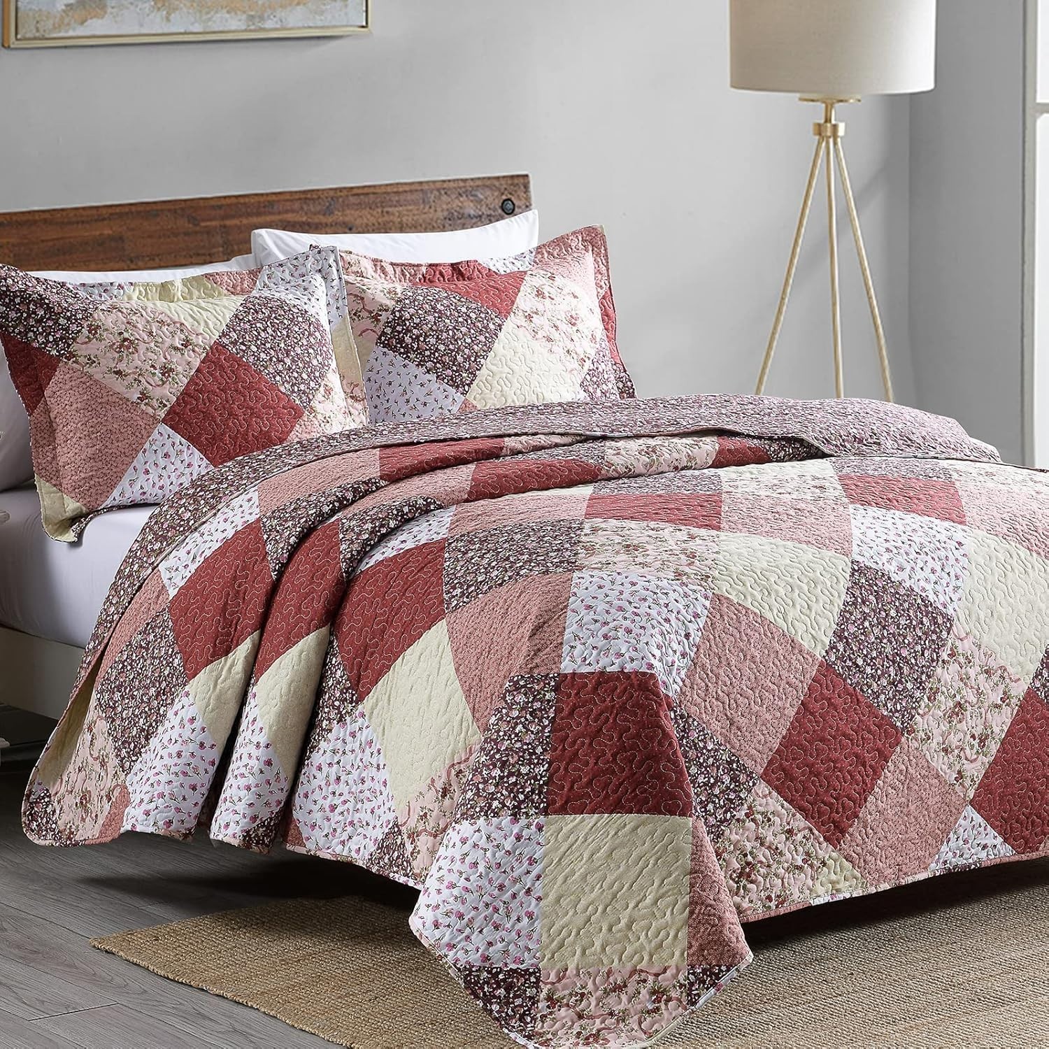 как выглядит 3-Piece Full Queen Plaid Quilt Set, Lightweight Soft Full Size Quilt Bedsprea... фото