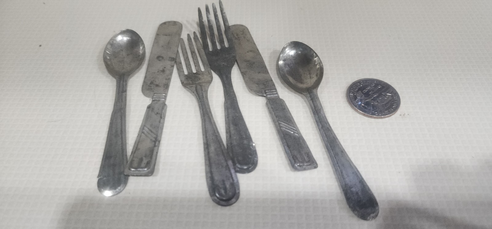как выглядит Vintage Play Tin Silverware Childrens Cutlery Set Kids Dinnerware фото
