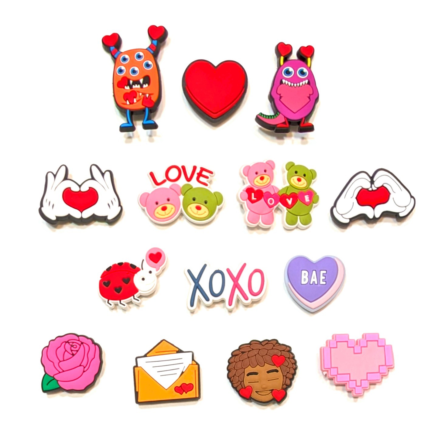 ROMANTIC SHOE CHARMS Pack of 14 V-Day Anniversary Gift Set Lot Fits Crocs