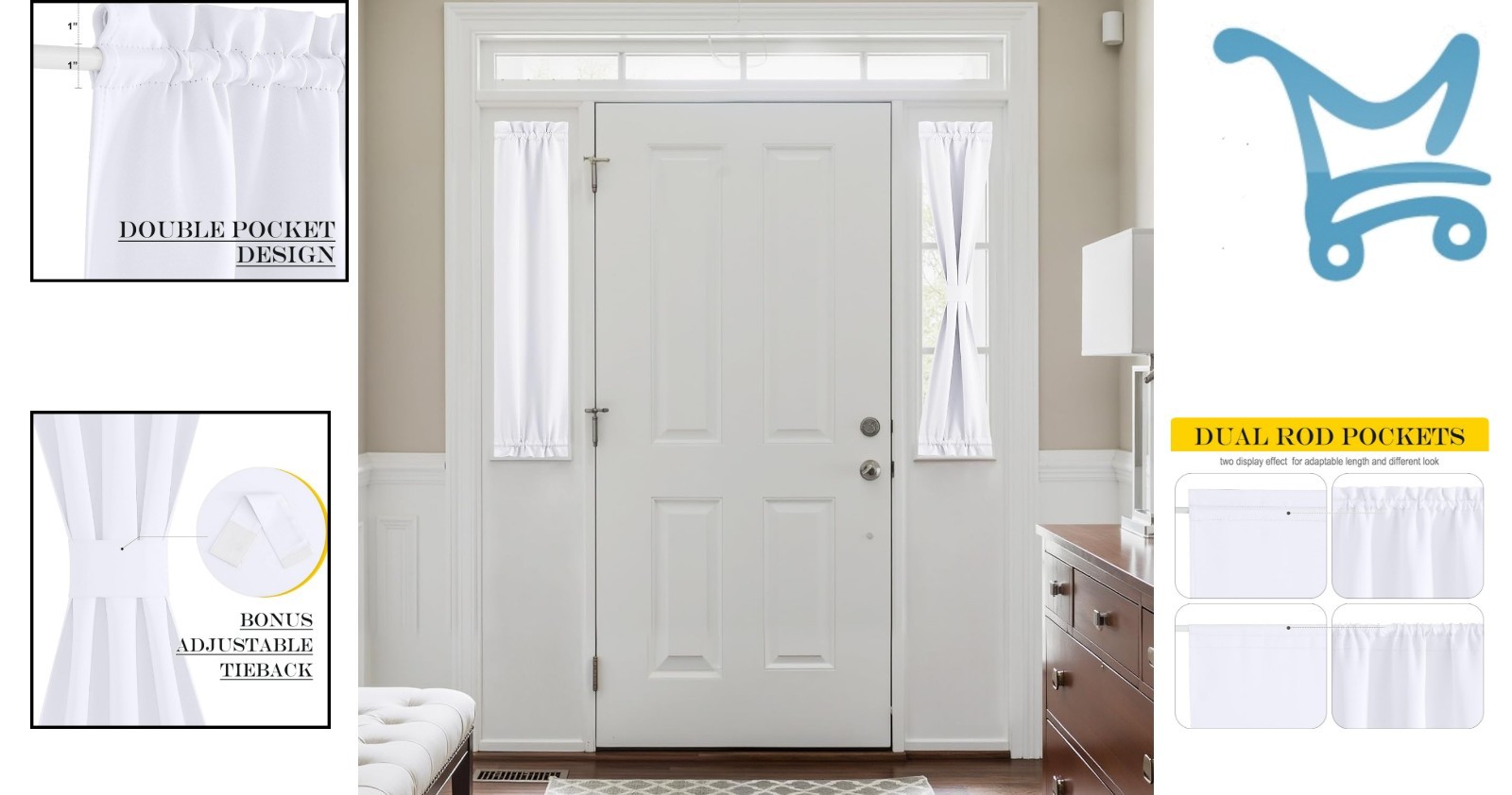 Особенности: Blackout, Thermal Insulated, Privacy Shades, Adjustable Tiebacks, Double Rod Pockets, Thread Trimmed, Pre-Ironed, Easy Installation, Machine Washable