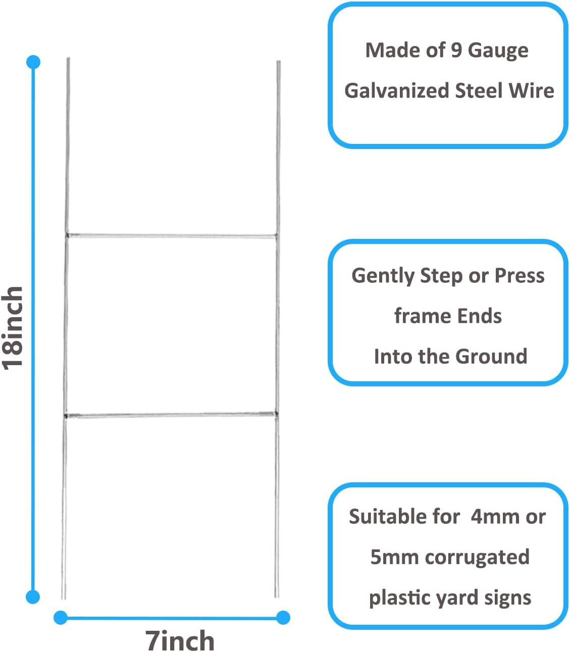 10 Pack H Frame Wire Stakes for Yard Signs,18'' x 7'' Yard Sign Stakes Metal for
