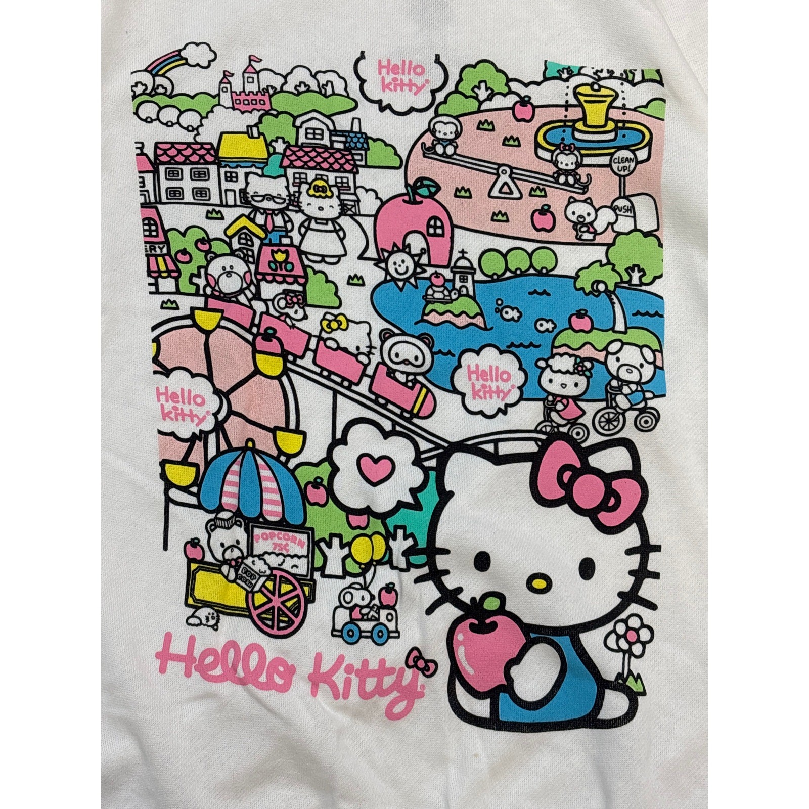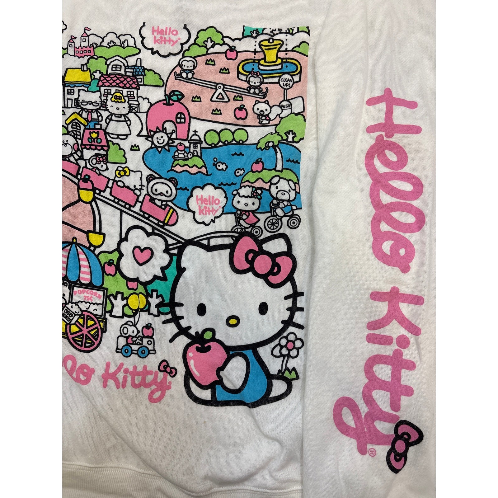 Hello kitty by Sanrio crewneck sweatshirt white pink spell out sleeve Large