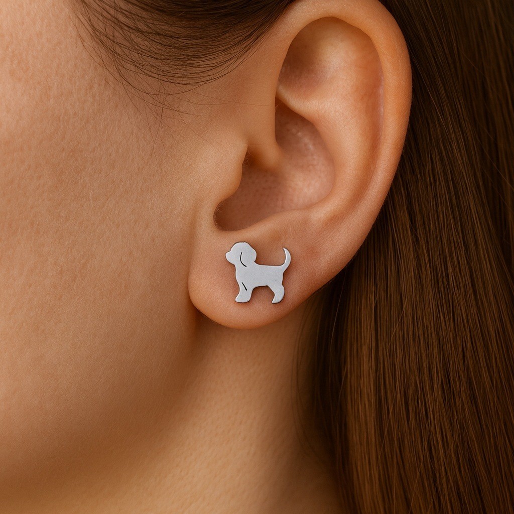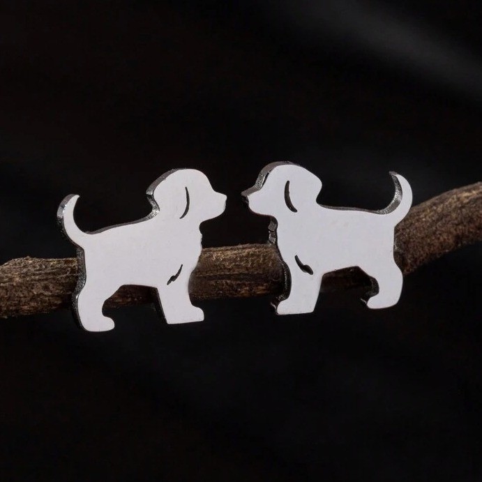 Silver Dog Earrings Puppy Stud Earrings Pet Animal Lover Jewelry Gift Stainless