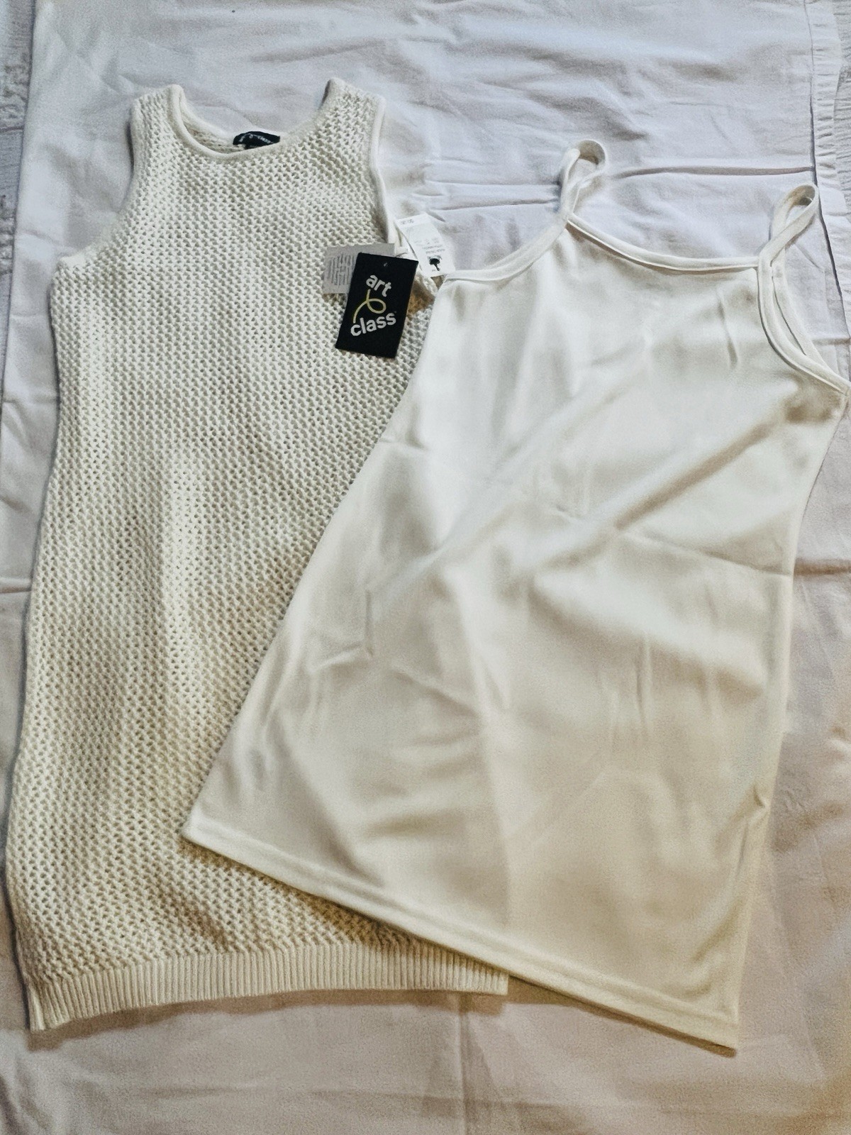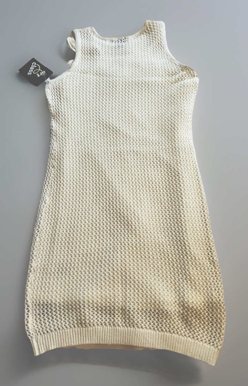 NWT Girls Sleeveless Crochet Knit Dress Off-White with Full Lining, Size M 7/8