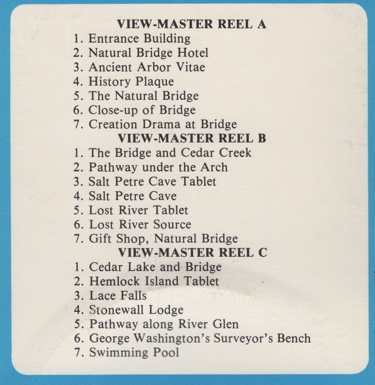 Natural Bridge Virginia View-Master 3 TEST Reels and Copy Cover