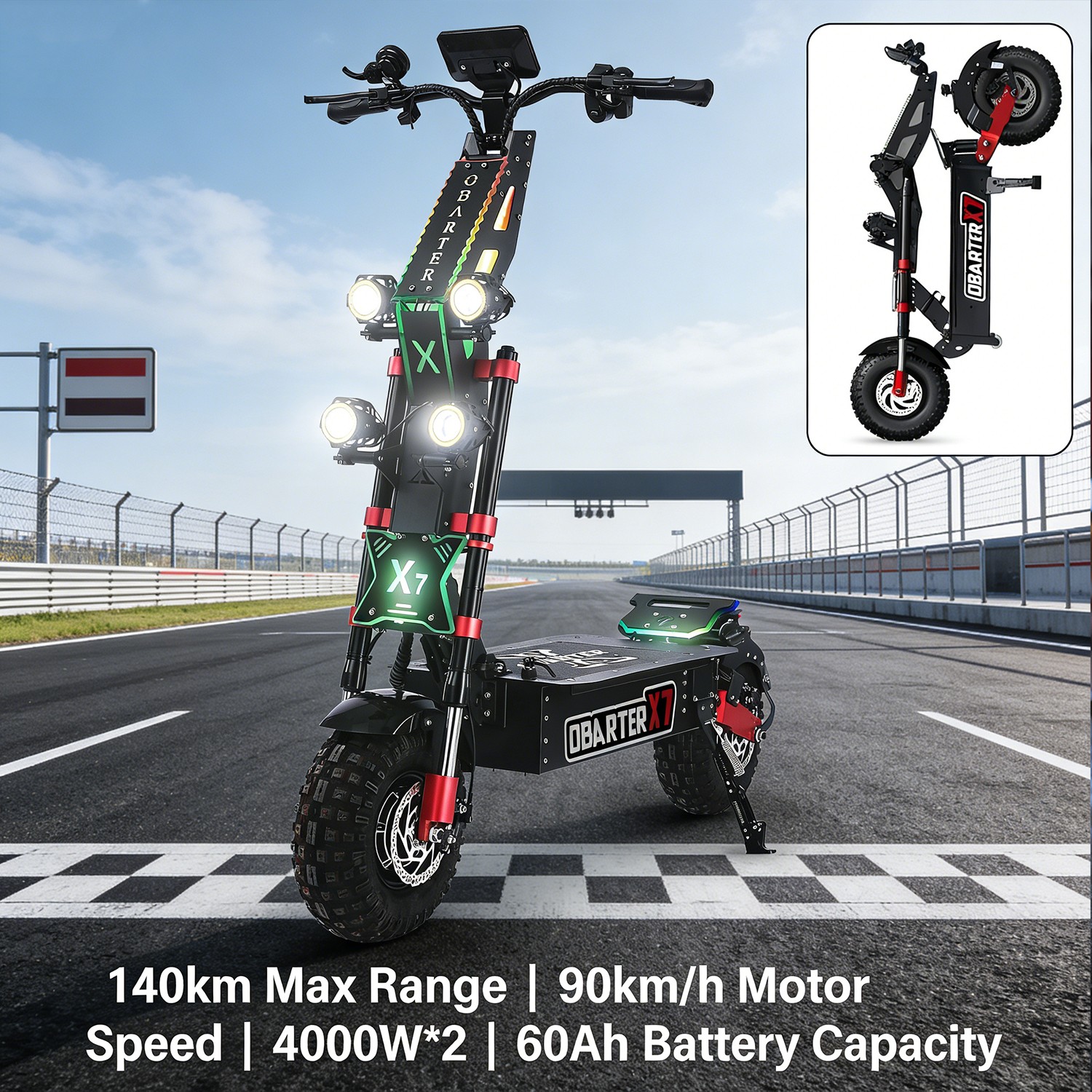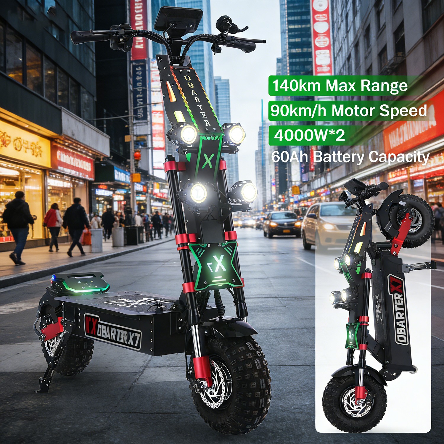 8000W Dual Motor Electric Scooter:56MPH,14Tires,62M Range 60V/40AH Adult