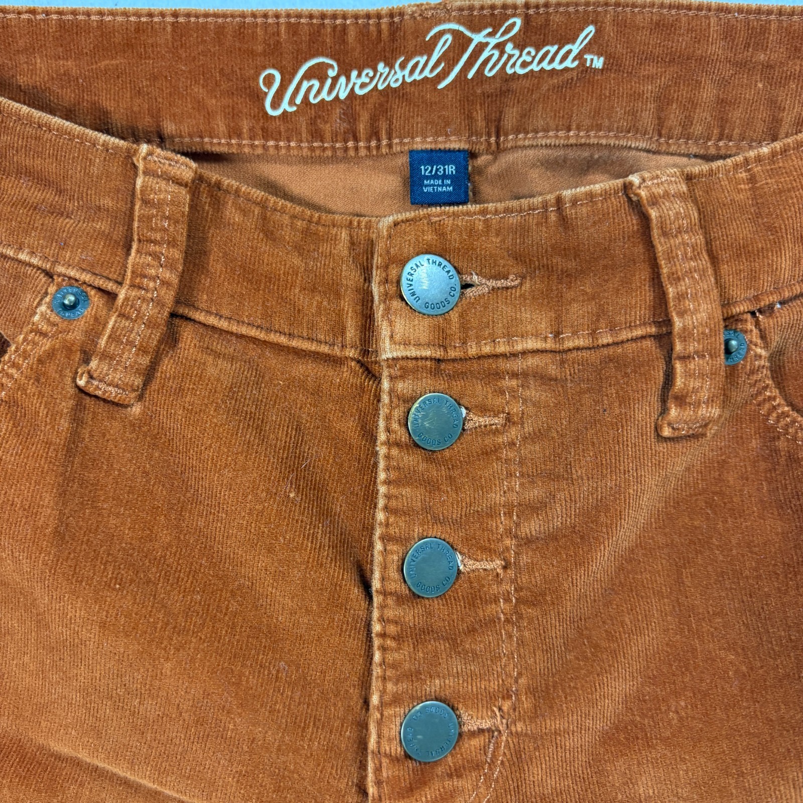 как выглядит Universal Thread Pants Womens 12 31R Corduroy Mid Rise Skinny Brown Retro фото
