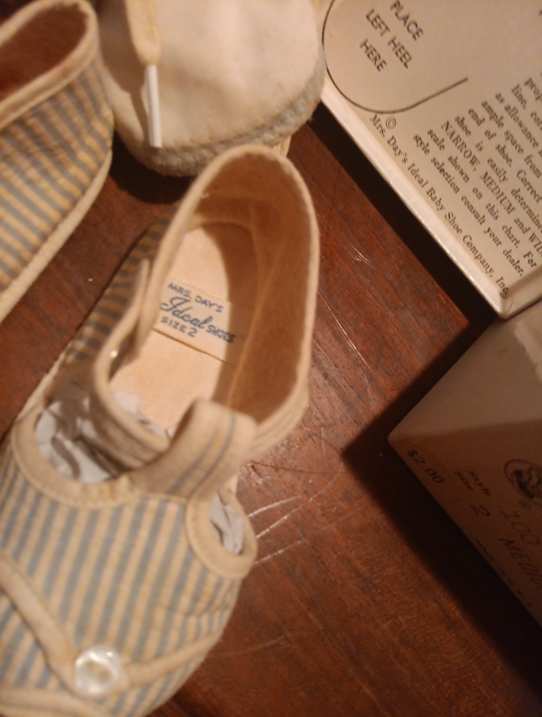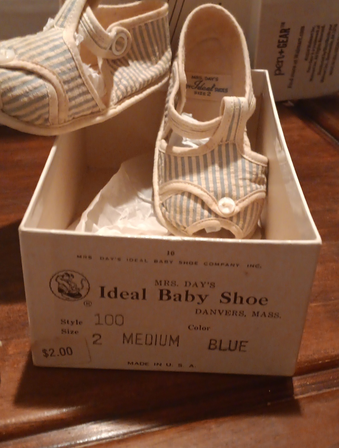 Vtg 1 Gertrude 1 Mrs Day's Ideal Baby Shoes N Orig Box size 2 Blue BothSoftsoles