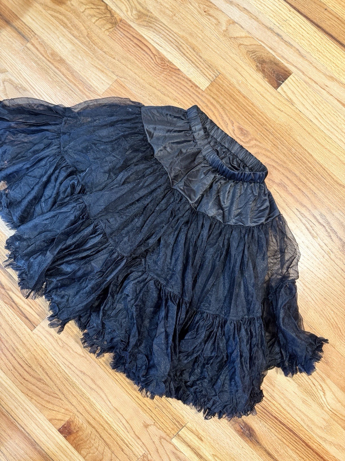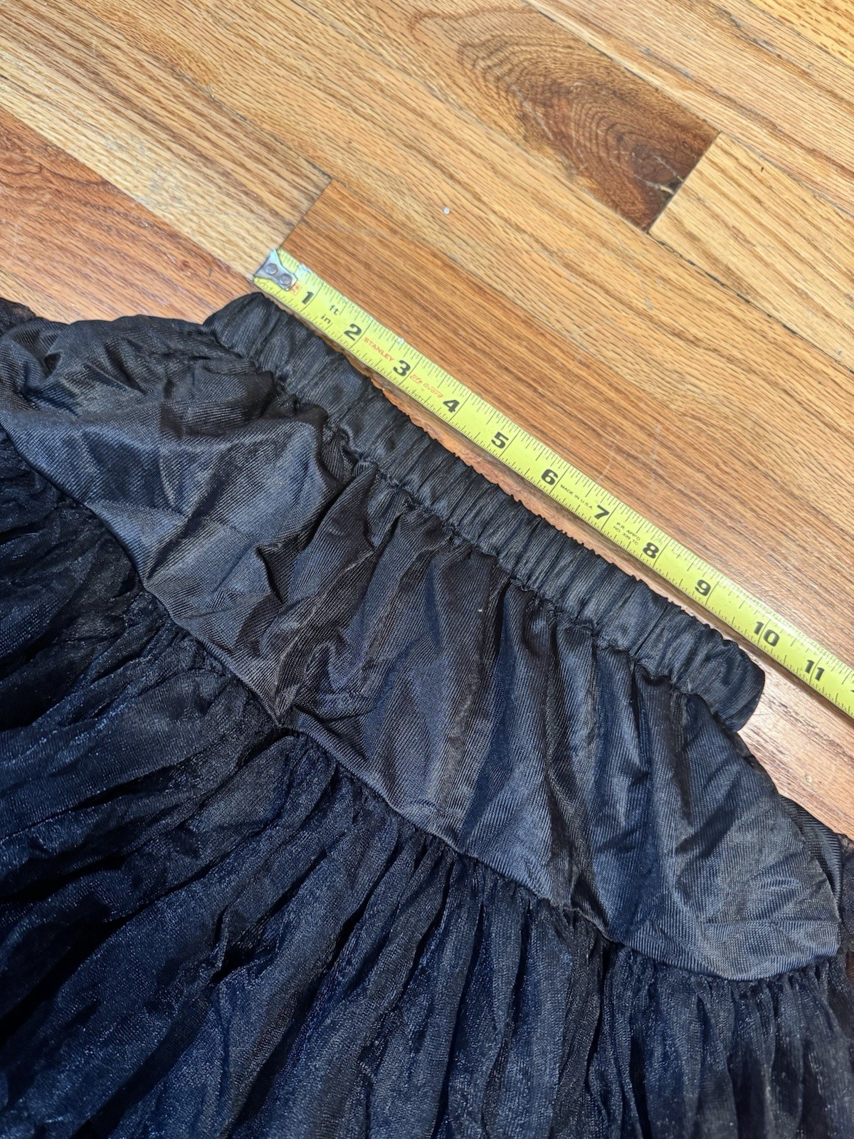 Black Tulle Petticoat Double Lined Ruffle Hem - Elastic Waist Stretch To 17