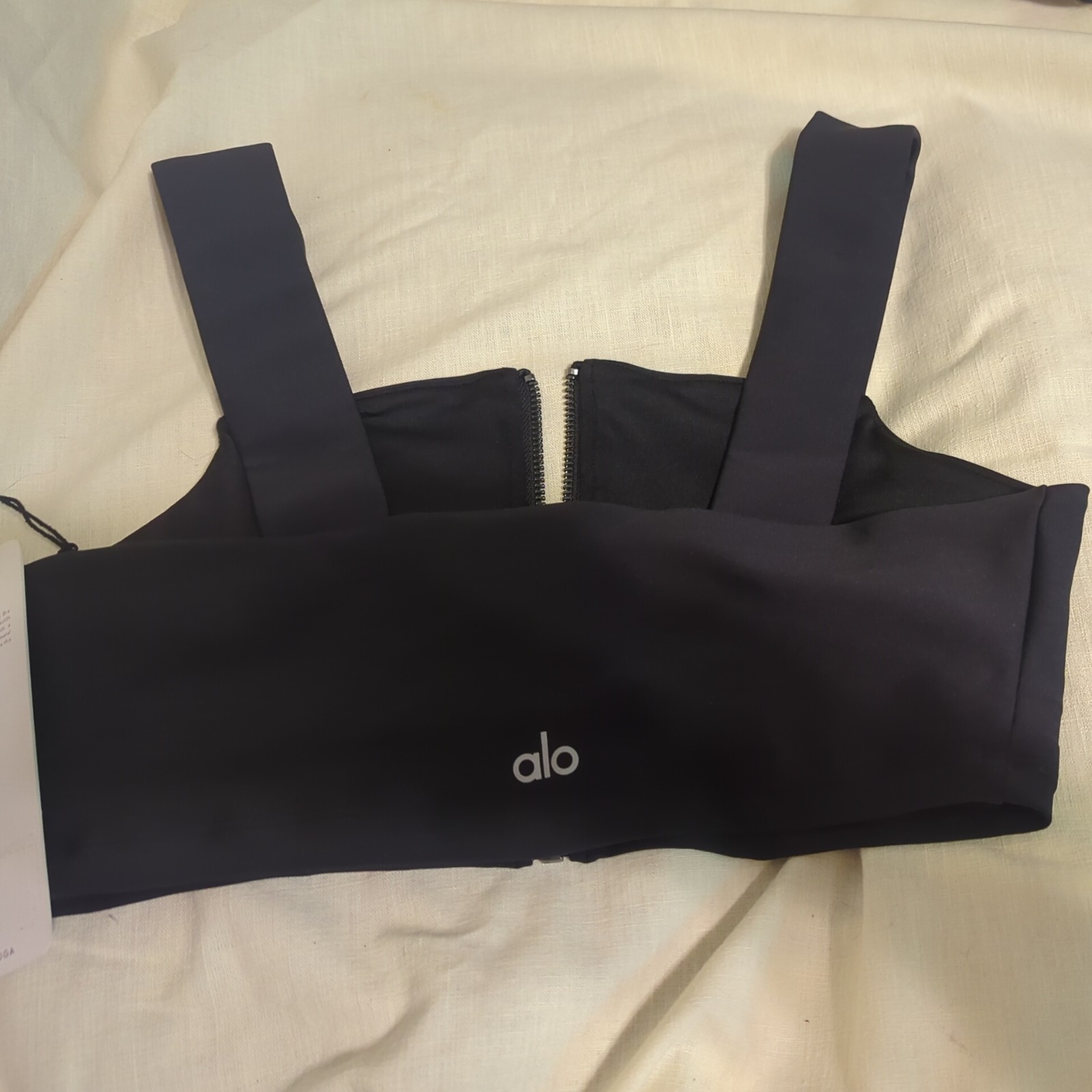 как выглядит brand new Alo Yoga Fast Zip Front Sports Bra Black Size Med фото