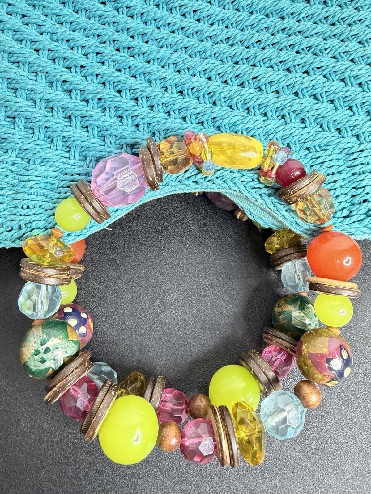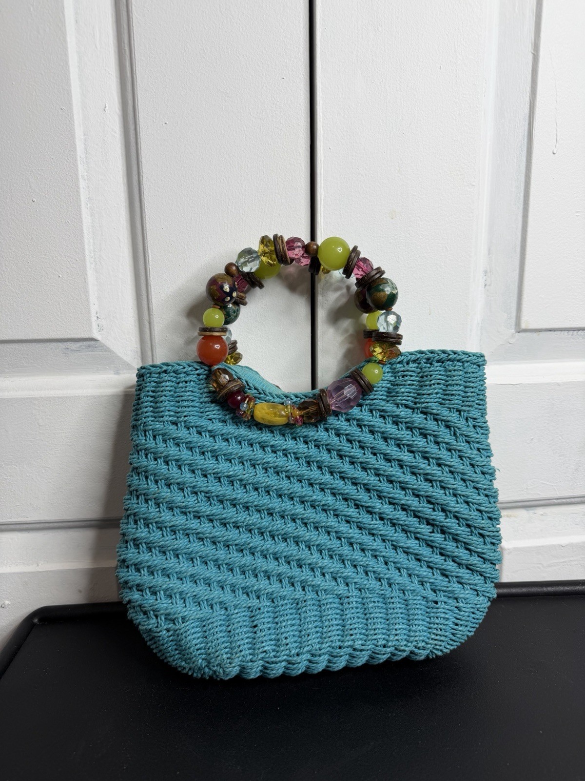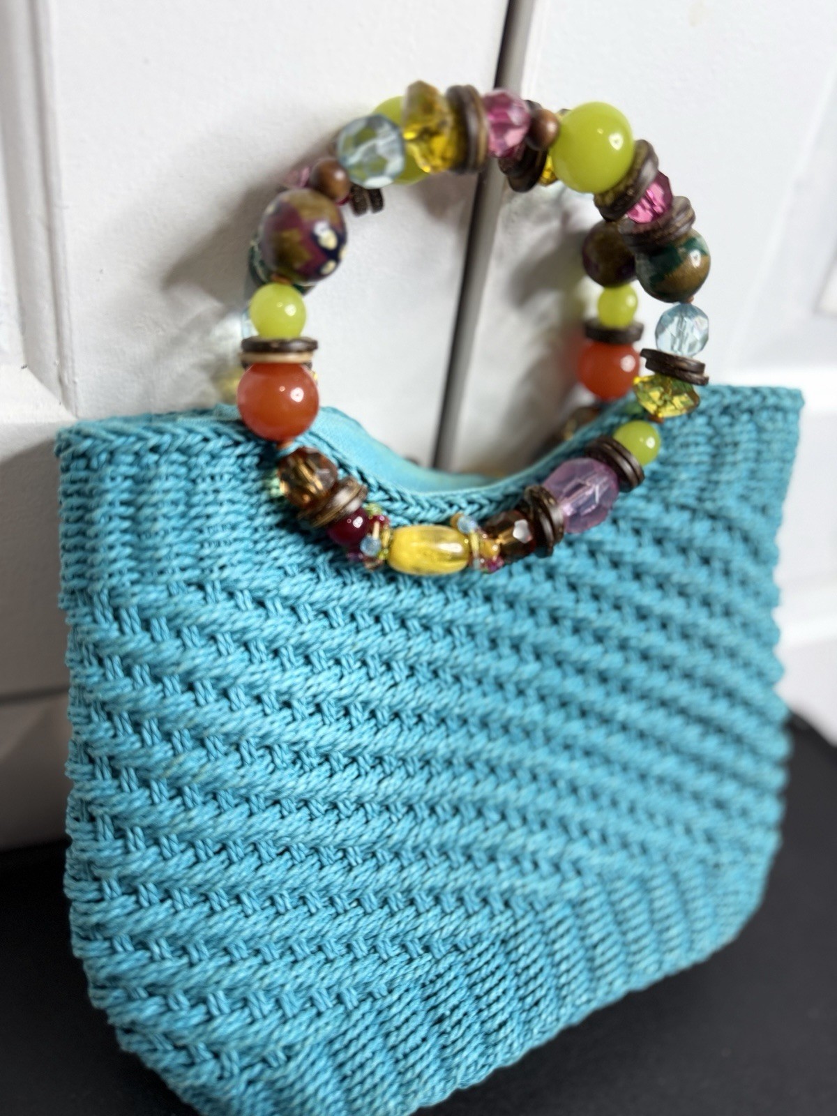 Vintage Cappelli Straworld, Inc. woven straw bag purse turquoise- jewel handles