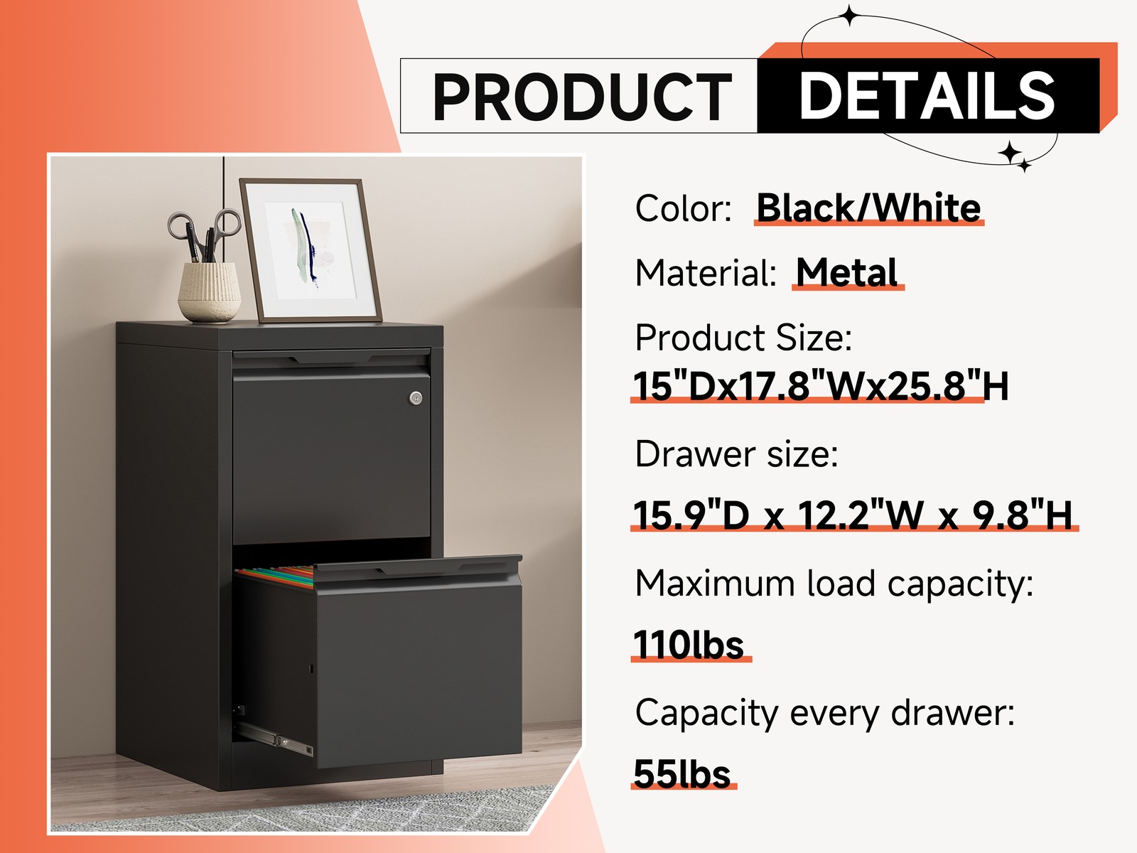 Metal 2 Drawer Filing Cabinet With Lock Vertical Storage Cabinet Office Storage