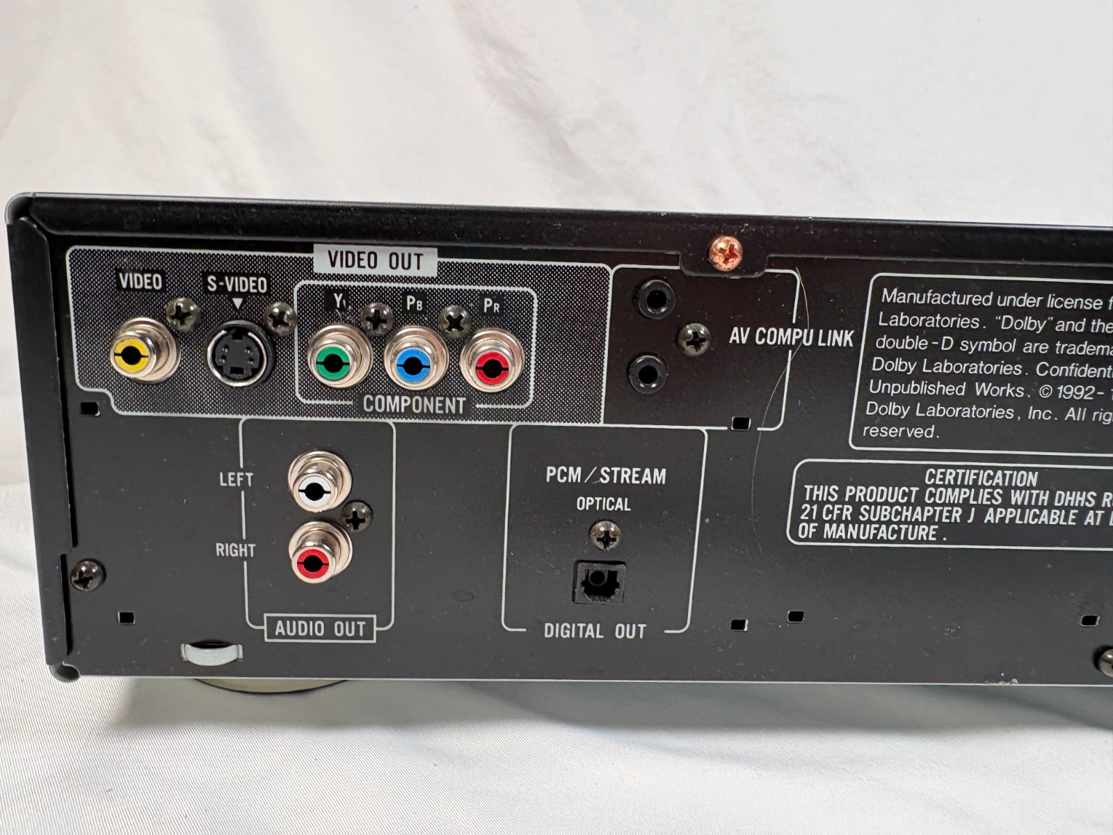 Connectivity: Composite Video RCA, Digital Audio Optical TOSLINK, Stereo Audio L/R RCA, S-Video