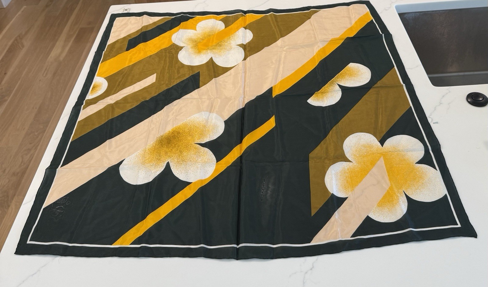 Vintage Hand-Printed 100 Silk Scarf Golden Camel Abstract Floral