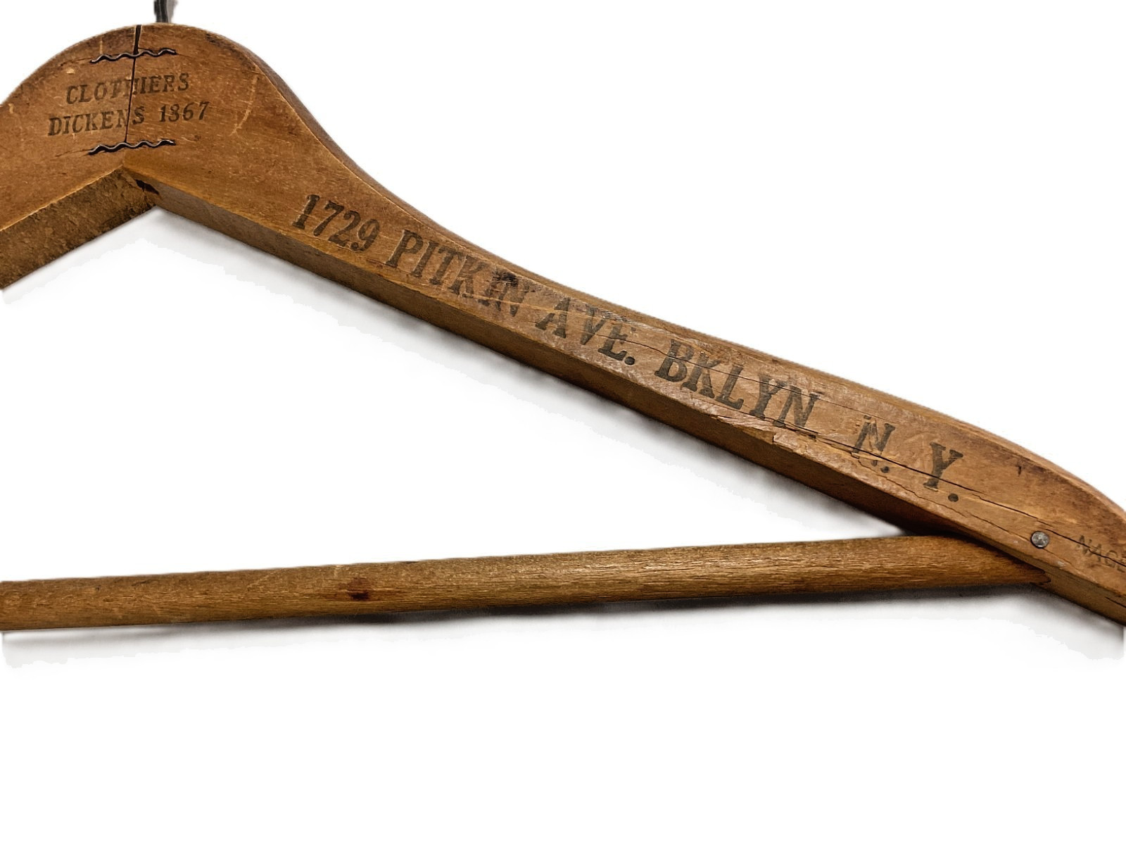 как выглядит Antique Wooden Advertising Hanger Miller Bros Clothiers фото