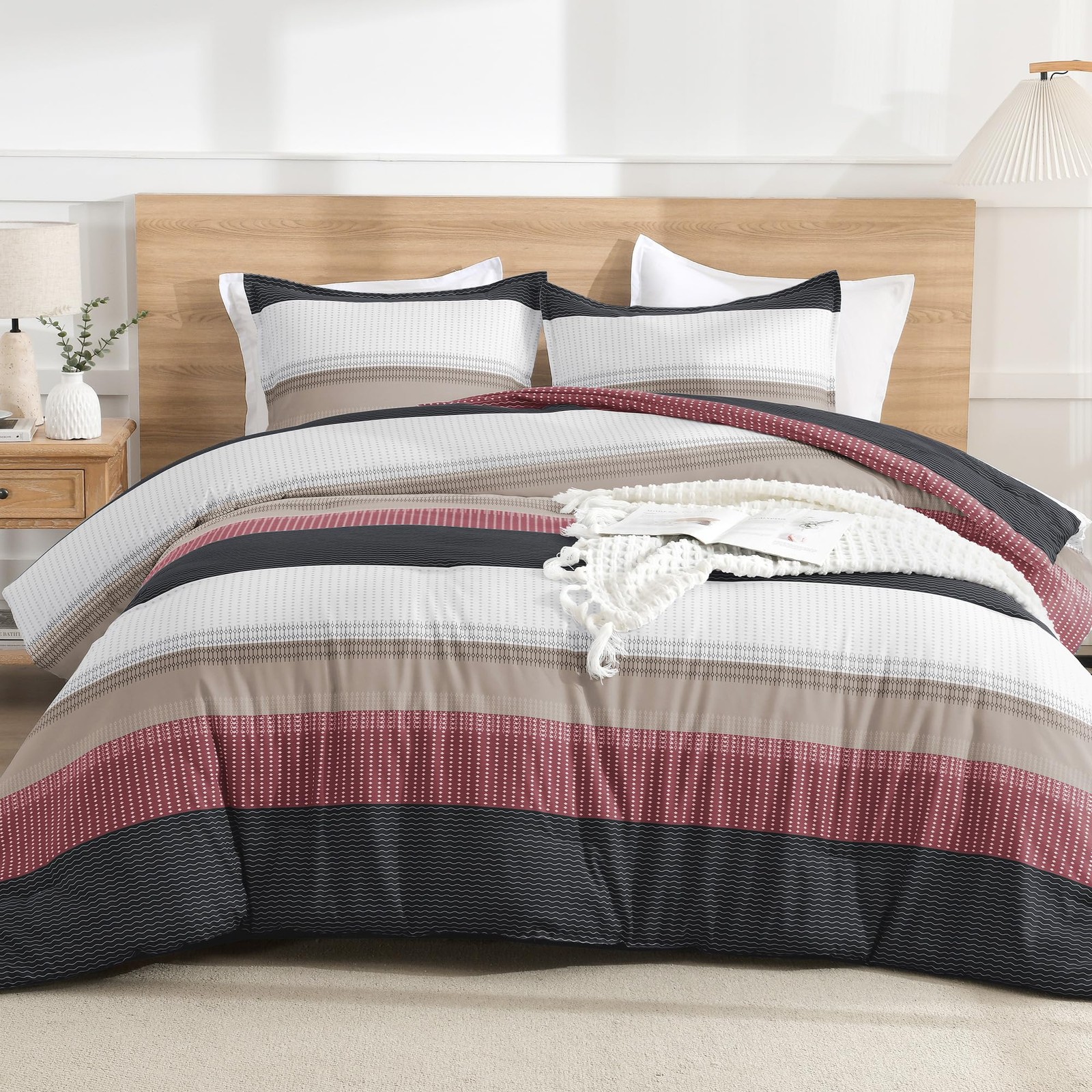 как выглядит Litanika King Comforter Set Red Black - 3 Pieces Lightweight Fluffy Bedding фото