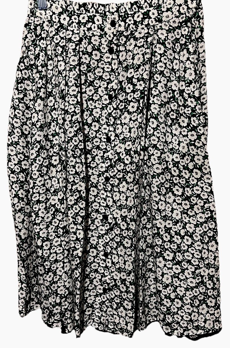 Vintage Pendleton Skirt 6 Cute Green White Floral Rayon Button Down Side Pockets