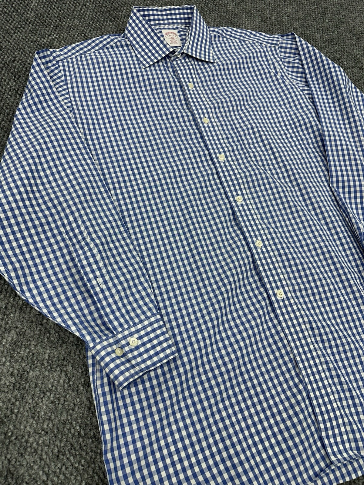как выглядит Brooks Brothers Shirt Mens 16-2/3 Blue White Non-Iron Button Down Gingham Check фото