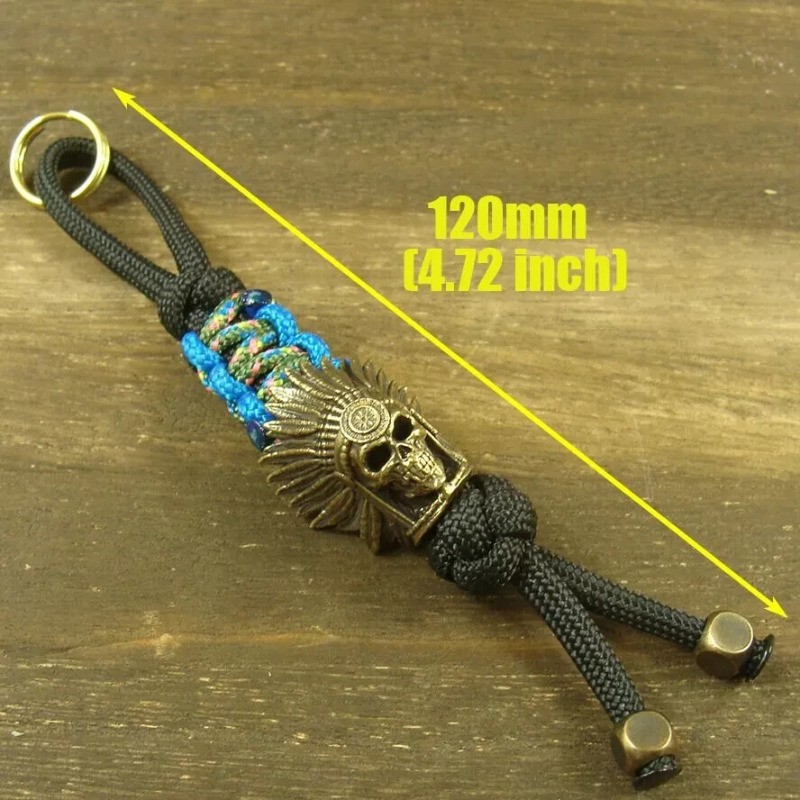 550 Paracord Solid Brass " Skull " Knife Lanyard Tassel Bead Beads GH362