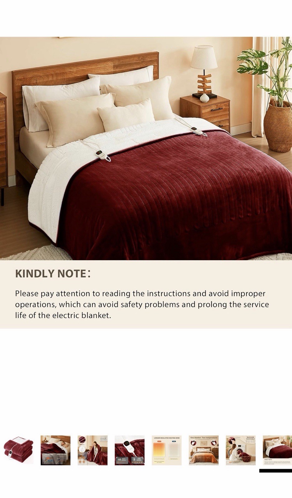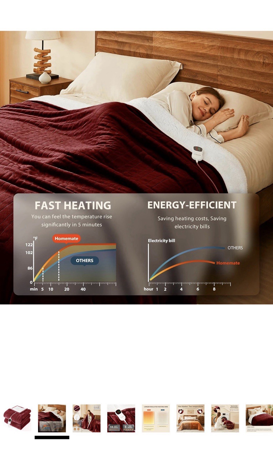 Homemate Electric Heated Blanket Twin 62 x84 Sherpa Flannel 10 Heat Auto-Off