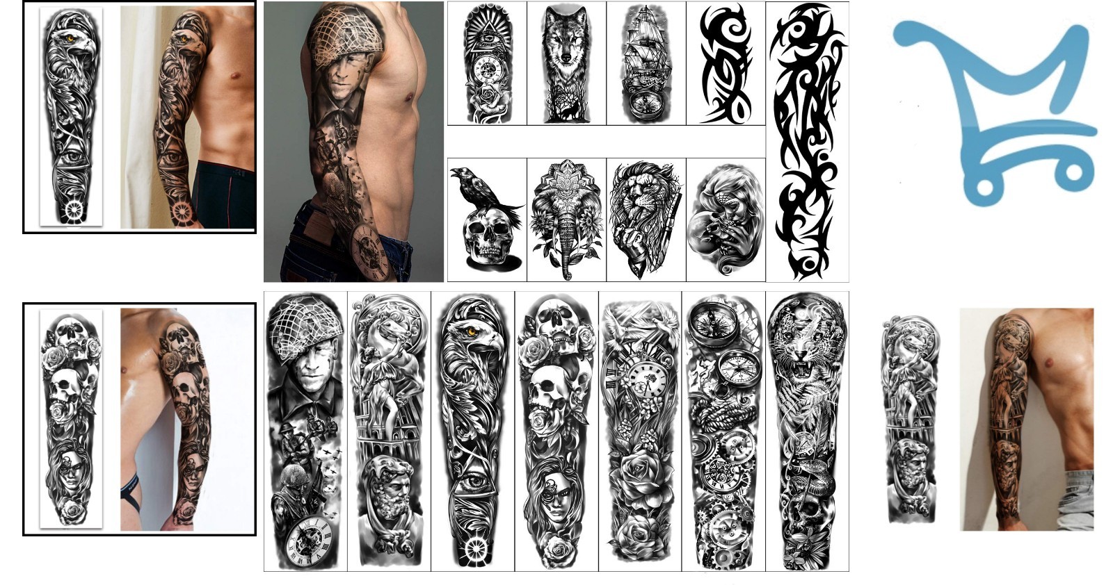 Full Arm Temporary Tattoos Waterproof Large Stickers for Men Women 22.83