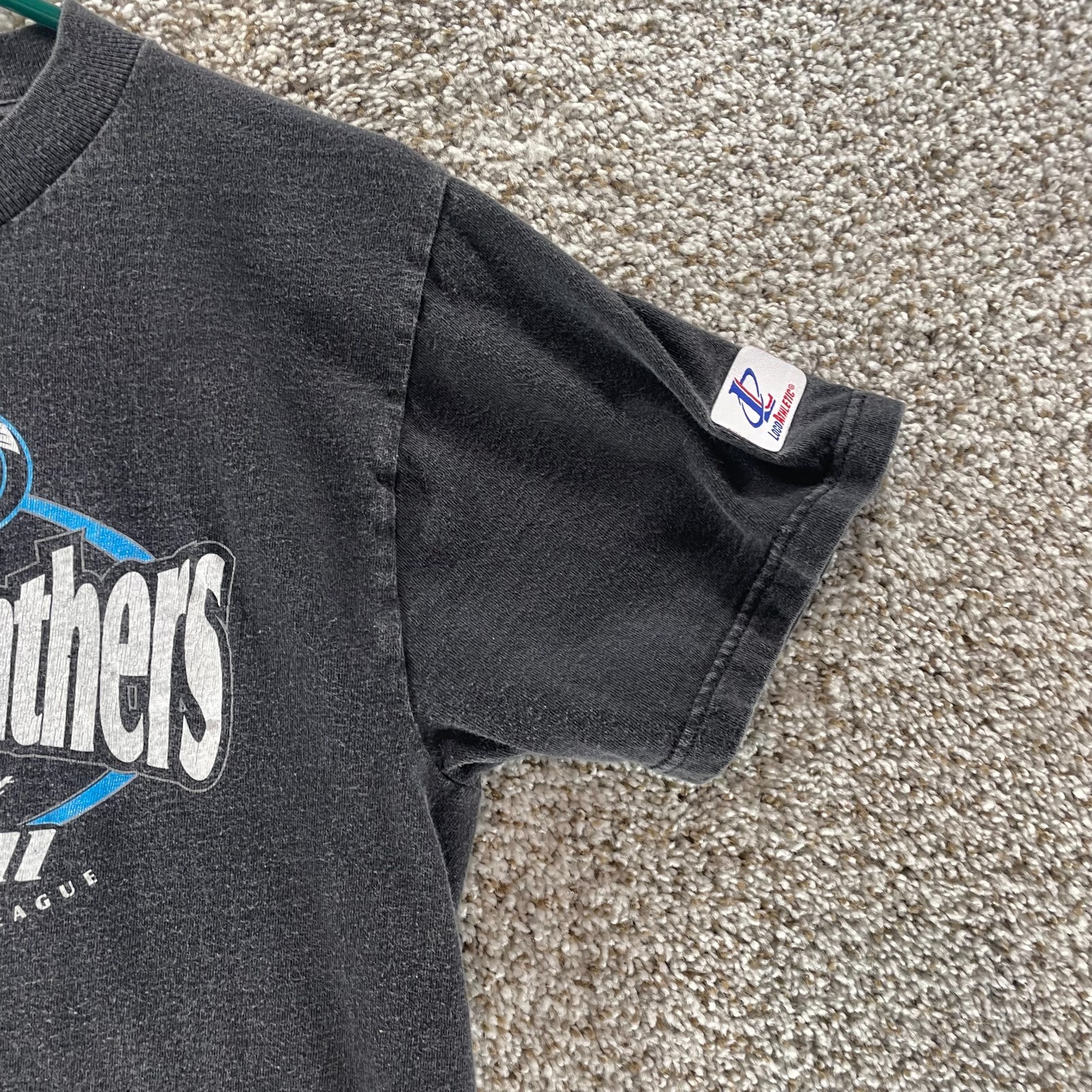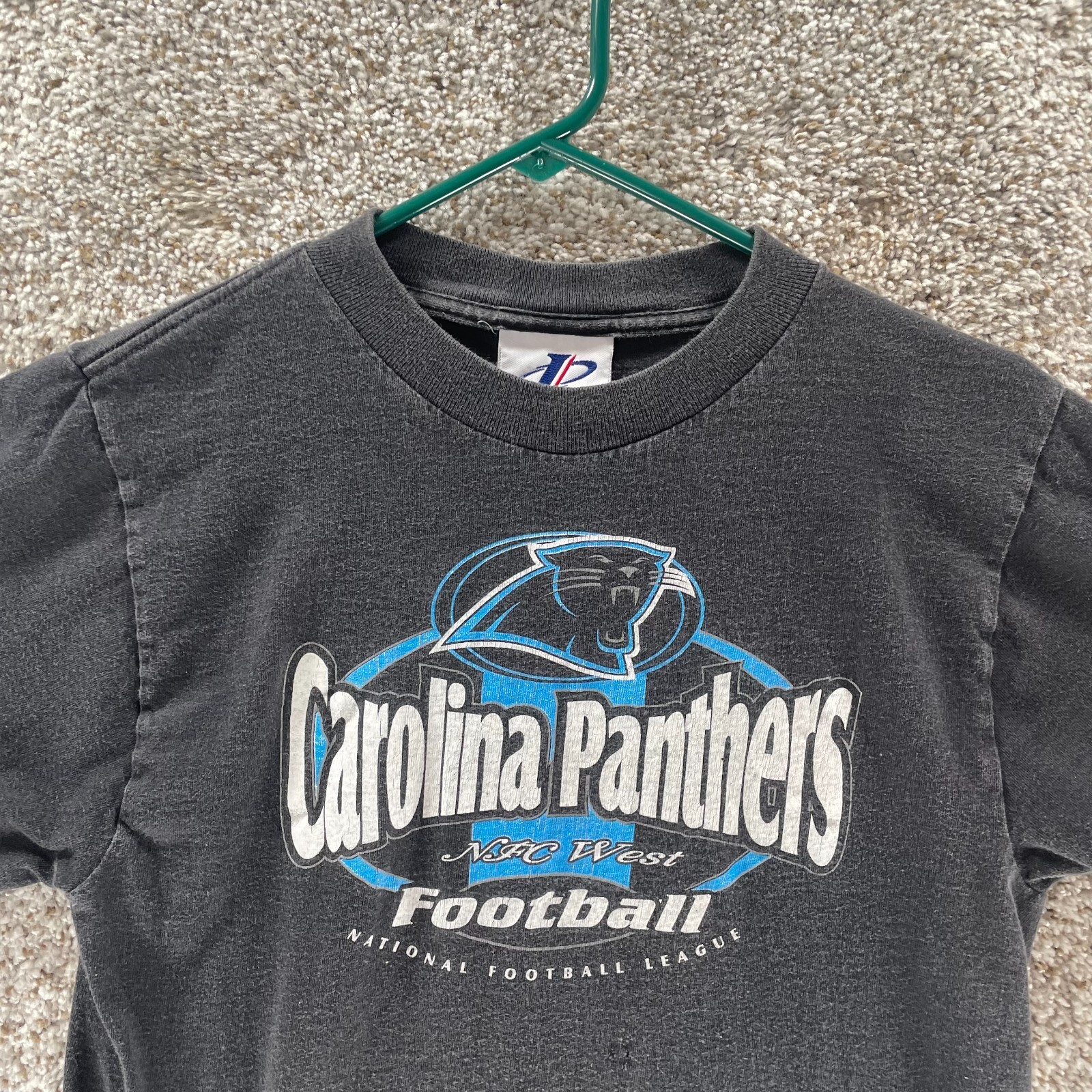 как выглядит Vintage Carolina Panthers Shirt Youth Medium Black Logo Athletic Single Boys Kid фото