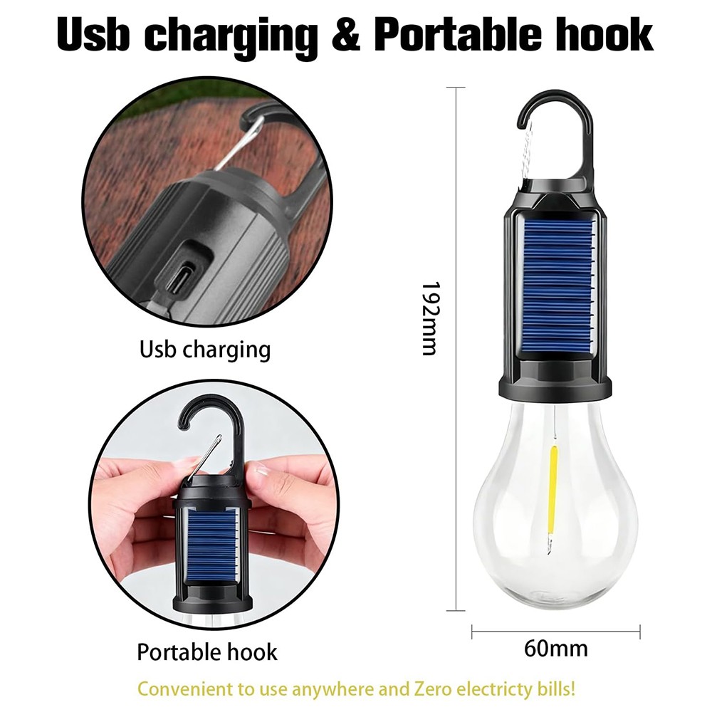 LED Solar Rechargeable Hanging Bulb Light Camp Waterproof Emergency Lamp Outdoor