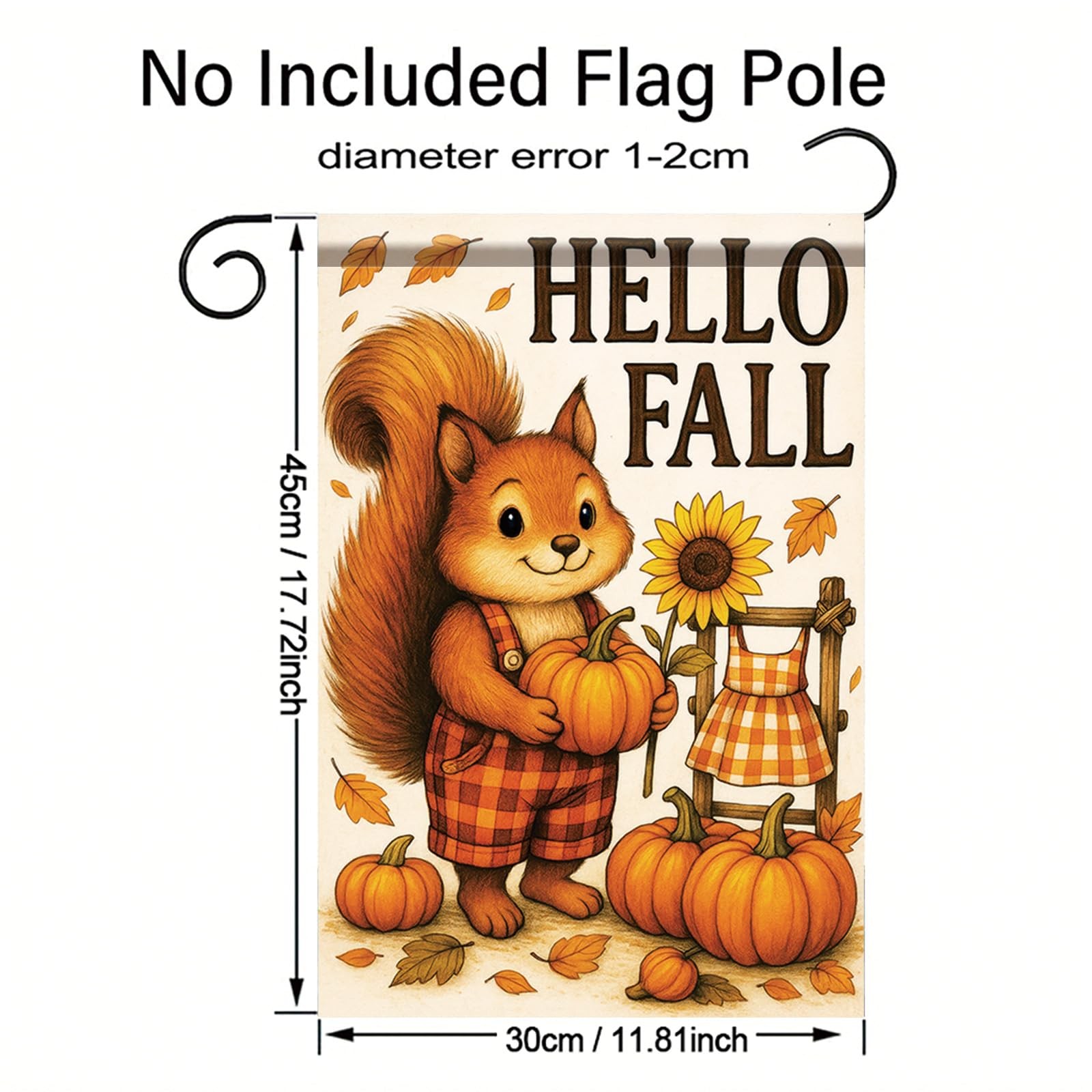 Fall Garden Flag Squirrel Pumpkin Flag 12x18 Inch Double-Sided Hello Fall Ani...