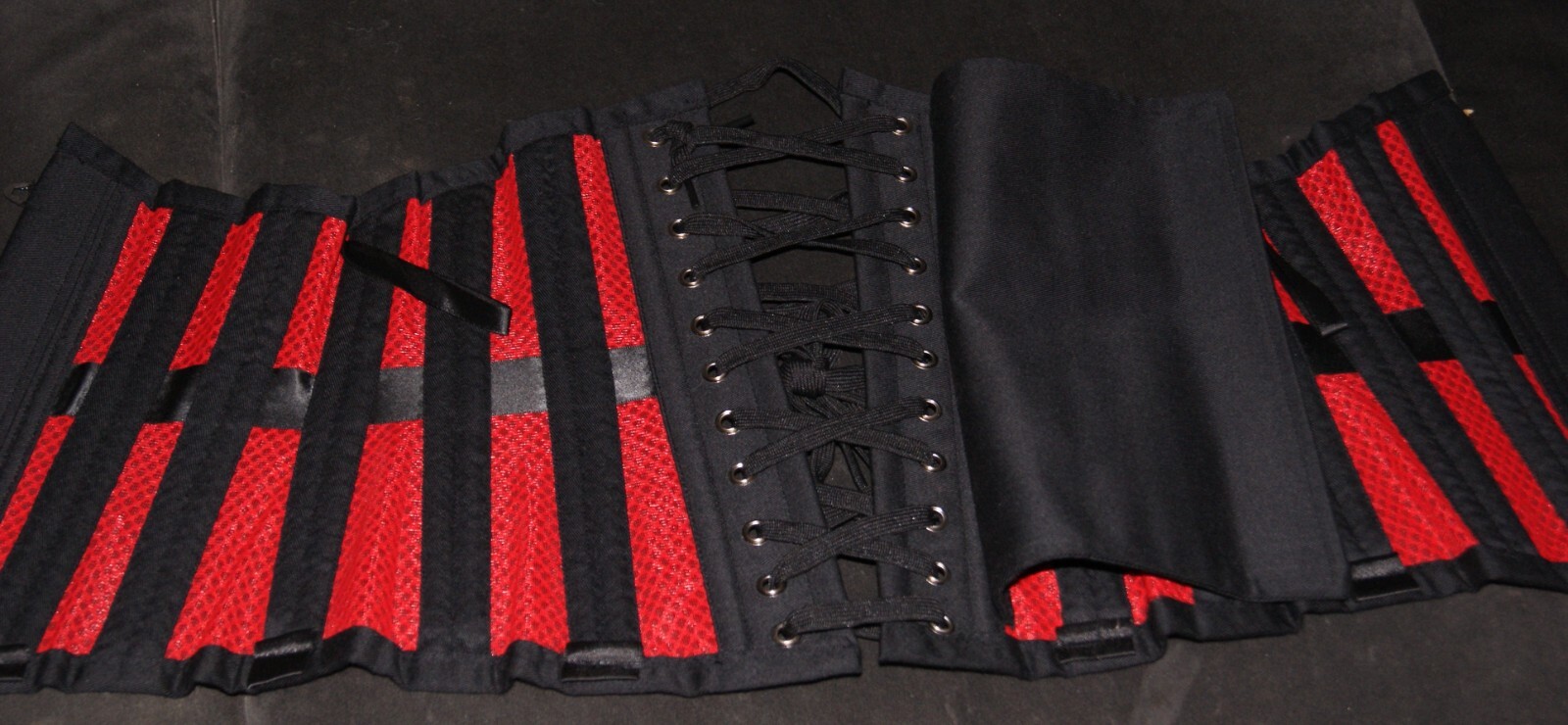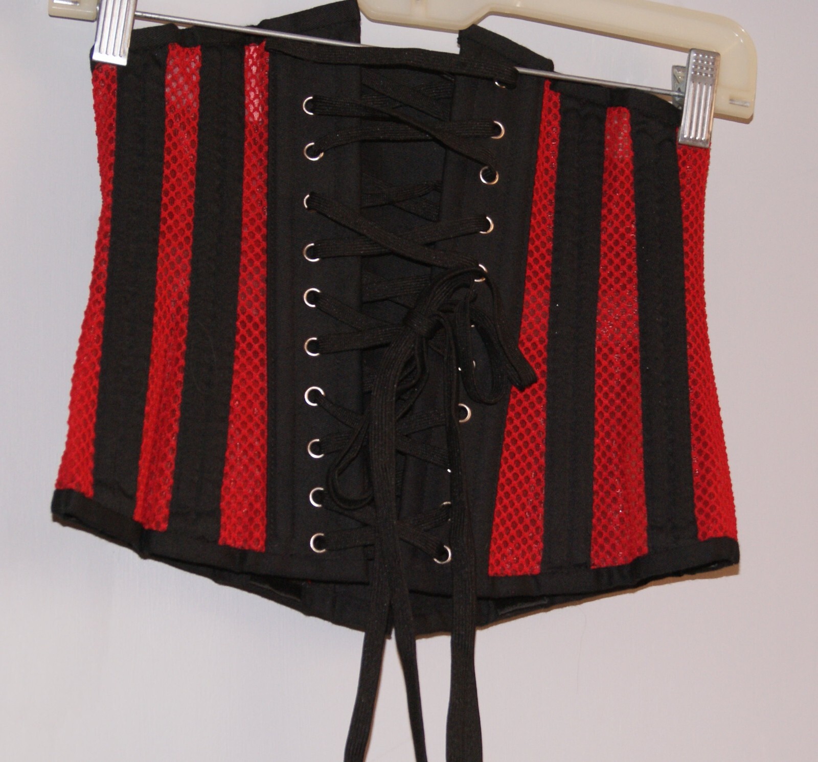 Very Firm Underbust Waist Cincher Corset Black w/Red Mesh 25.5 Waist W/O Adjust
