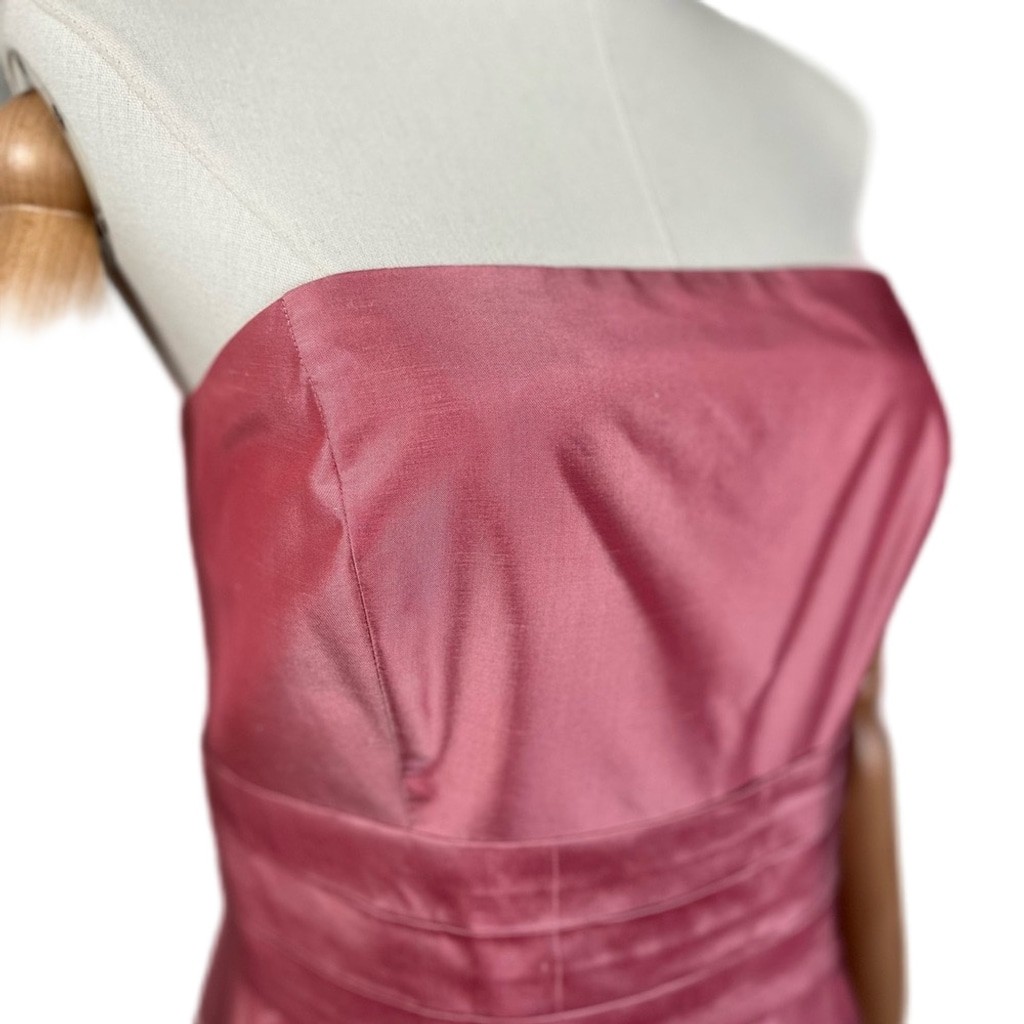 как выглядит Ann Taylor Pink Silk Strapless Midi Dress Fully Lined Size 14 фото